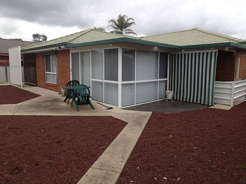 Located in the fully established Katrina Circuit precinct is this very well presented 2 bedroom residence and in the secure rear yard is a fully established 2 bedroom unit with it’s own bathroom lounge kitchen front veranda and with split system heating and cooling. Now back to the home, 2 generous bedrooms with built in robes and fans, great formal lounge and a light filled kitchen meals family room with natural gas cooking. Climate comfort is ensured with Natural gas heating and evaporative cooling. There is a sunroom plus an alfresco area on the way to the powered shed that has 2 roller doors plus a pa door. There is then a single car garage. Side entry to the secure rear yard is available. This is truly a great package that enables the use of the 2 bedroom unit for either an elderly parent, a teenager or a tenant. PRICE FURTHER REDUCED. MUST BE SOLD.