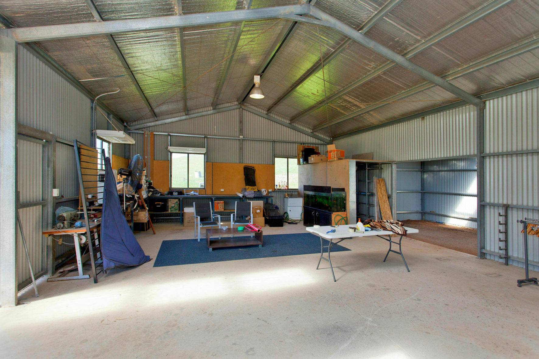 Need a shed? Well you will not be disappointed! 18m x 9m of powered, concreted, and insulated shedding with the bonus of an 18m x 5m skillion roofed area also. There is even a concreted carport area for your cars.