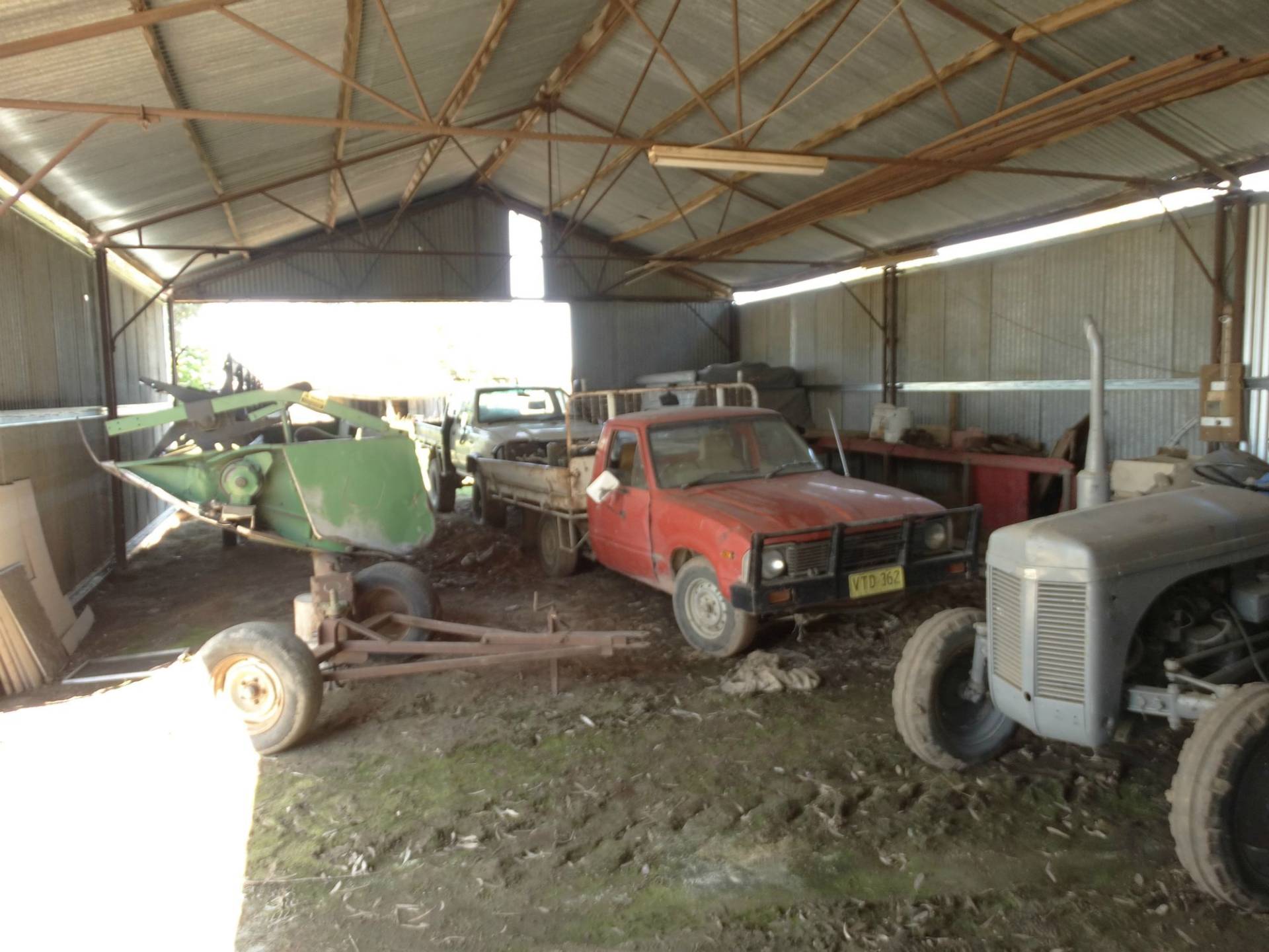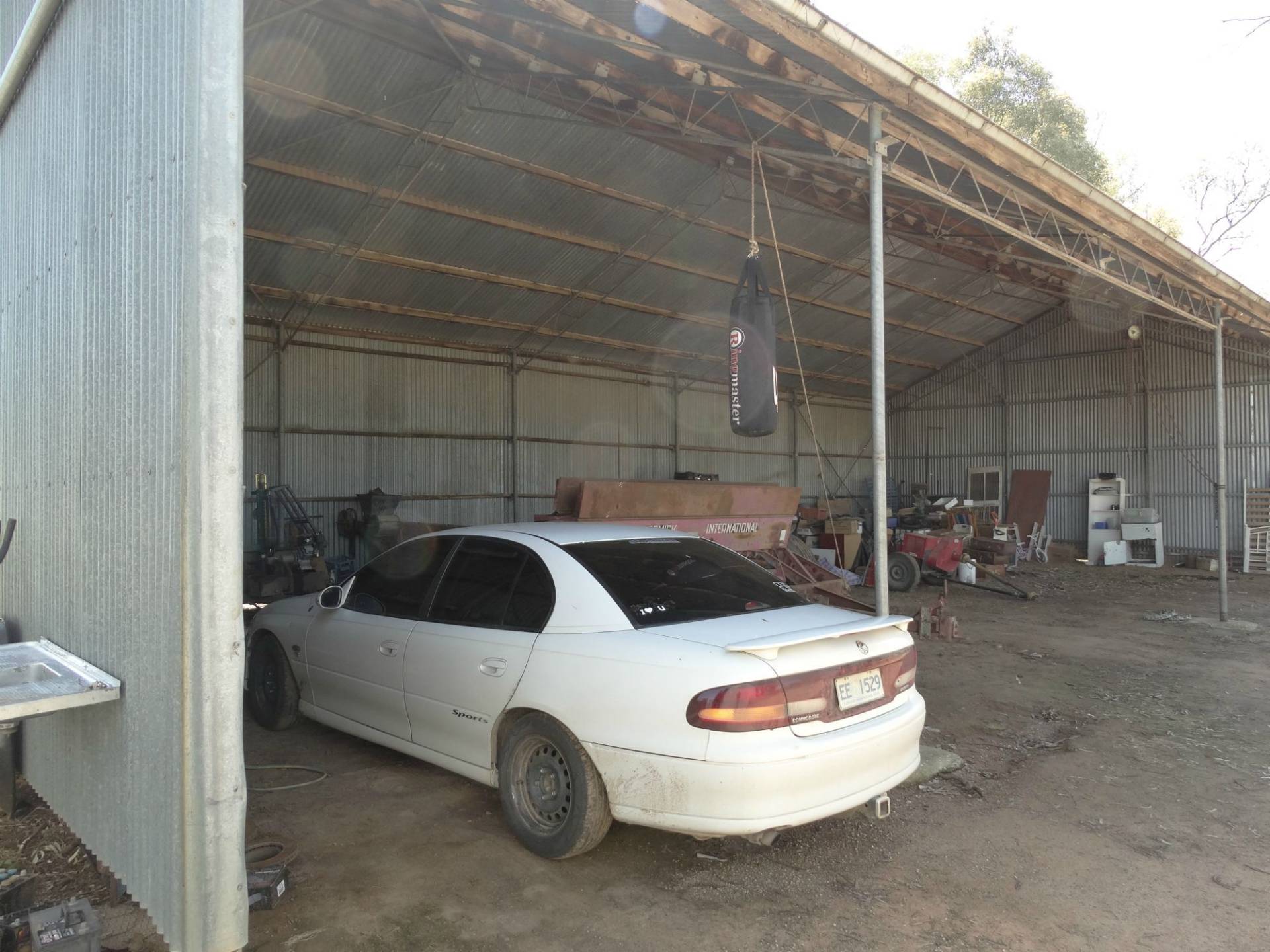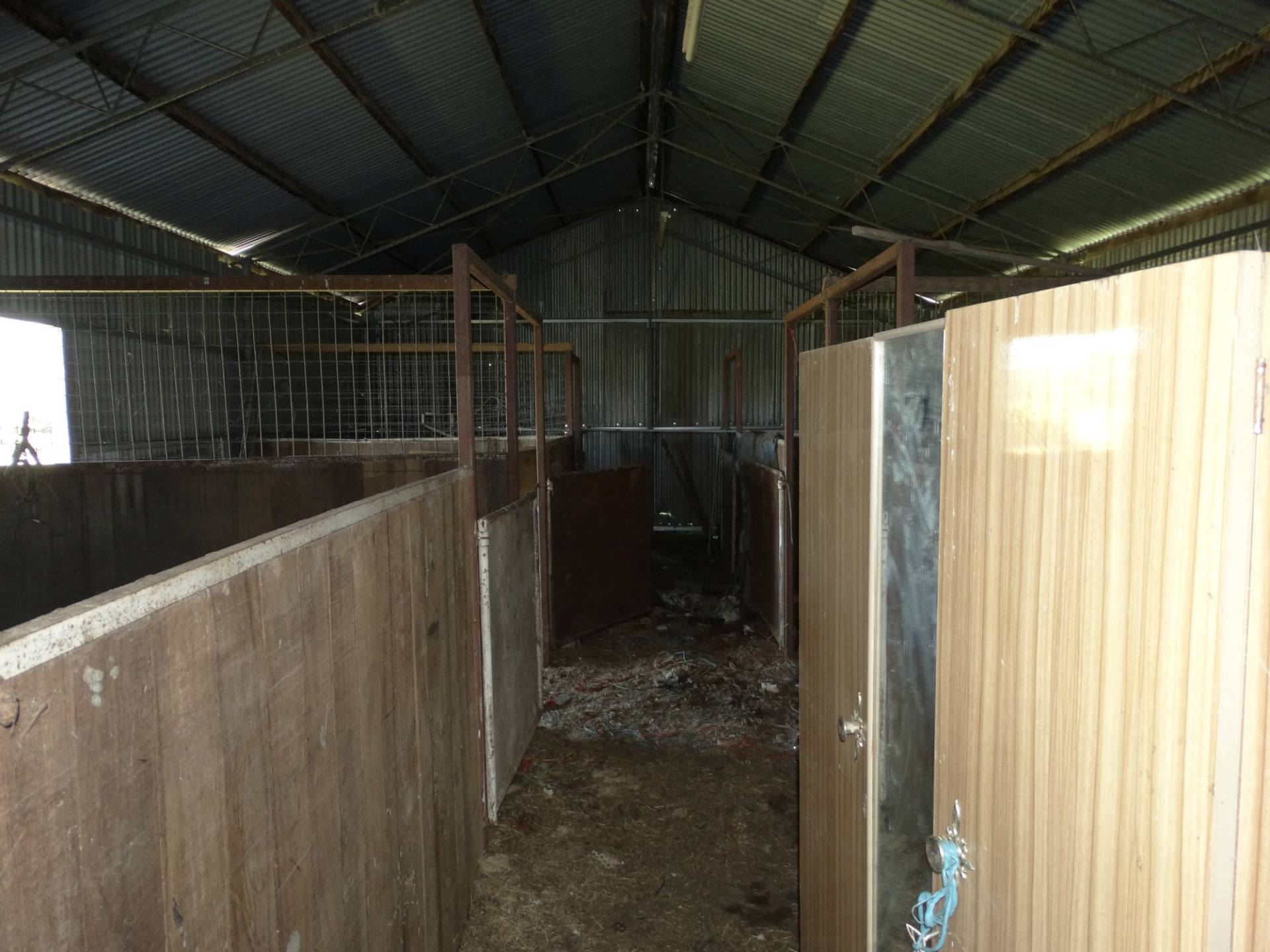 Gently undulating block of land, with the working improvements a single carport, a machinery shed of 9.4 metres x 19.2 metres and a 2nd machinery shed of 9.1 metres x 18.7 metres both with power, hayshed, stables of 7.5metres x 16 metres with 6 loose boxes,tack room and feed room.