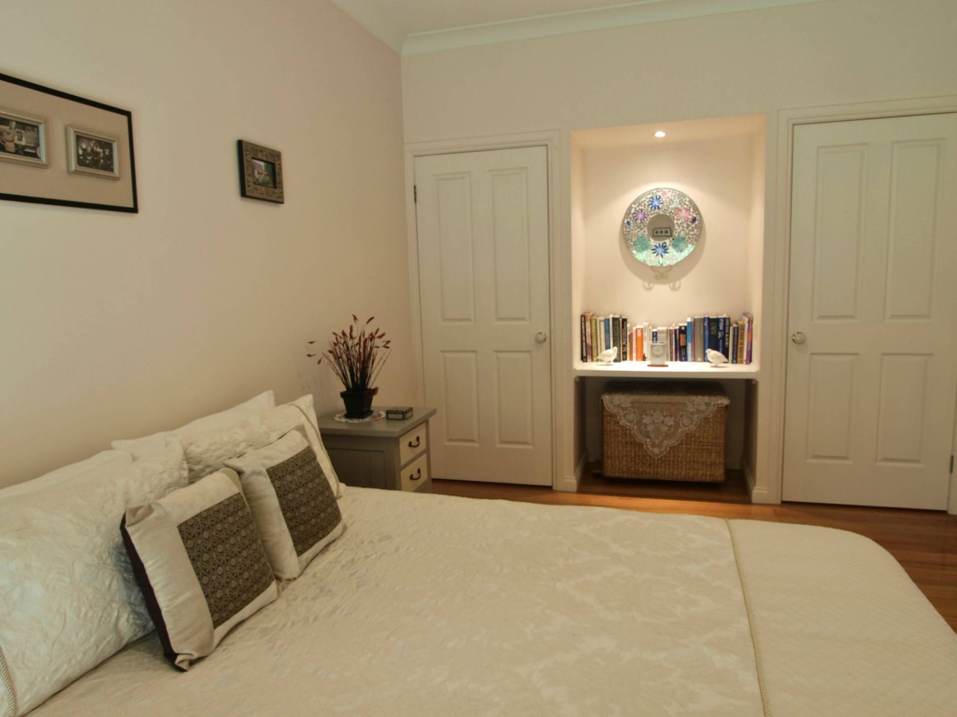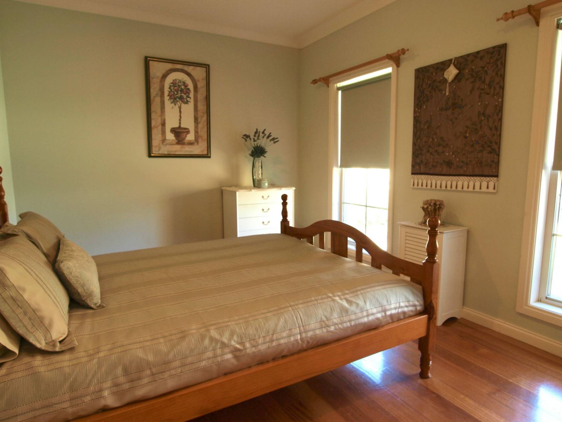 The Builders own home assures a quality often not affordable today. Architect designed the 21.5 squares of living area includes a spacious open plan living area with polished timber floors, reverse cycle split system air conditioning, a combustion wood heater, gas hot plates and electric oven, dishwasher, breakfast bar and island bench. An ensuite with separate toilet and walk in robe in the main bedroom, built in robes with study nook in 2 bedrooms and the 4th being very spacious could serve as a formal lounge as it was originally if required. The outdoor decking area overlooks the very pleasant surrounds with its carpet of Kikuyu lawn and well established trees. Very good shedding which includes a carport, lock up lined workshop and plenty of storage area plus a wood heater and toilet. Located in a very quiet area of town with a pleasant outlook and a flat block of nearly an acre in size, this quality property will suit a wide range of homeowners, the perfect home for a young family or peaceful residence for a retiree.
