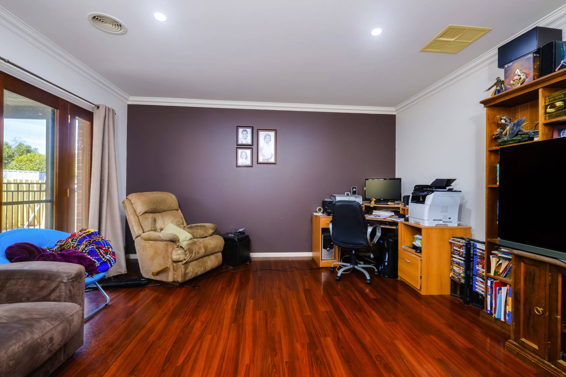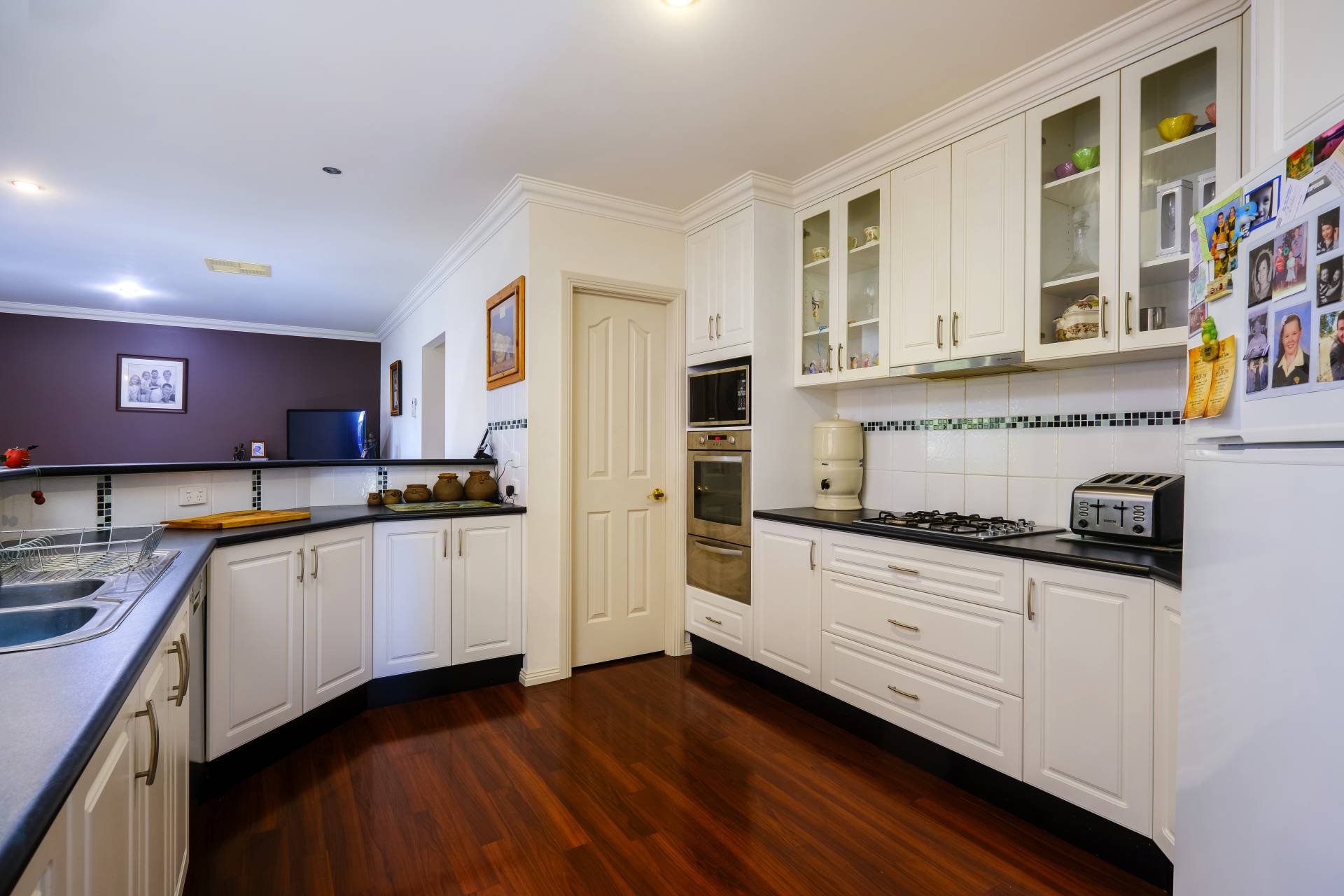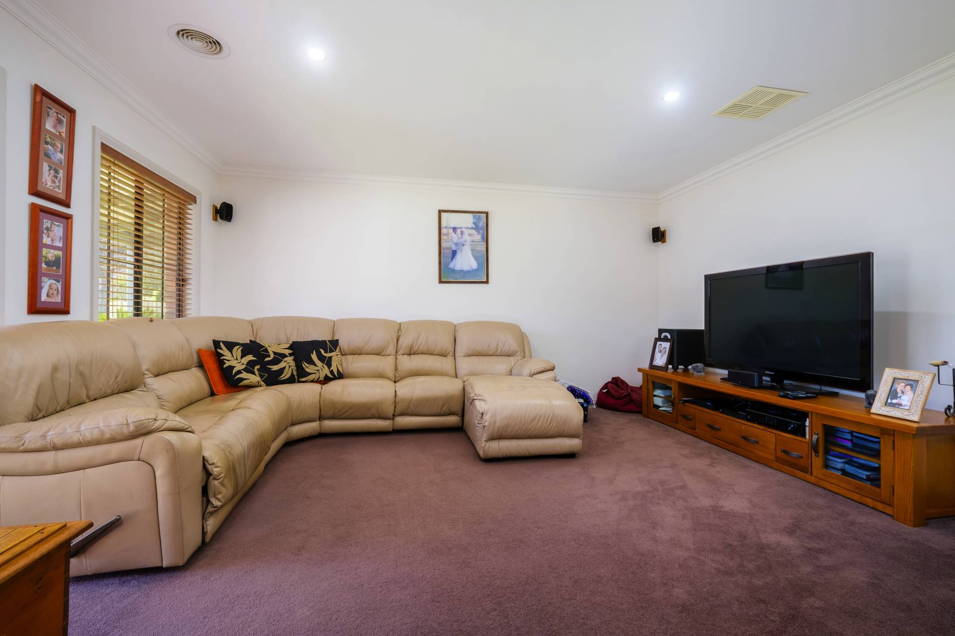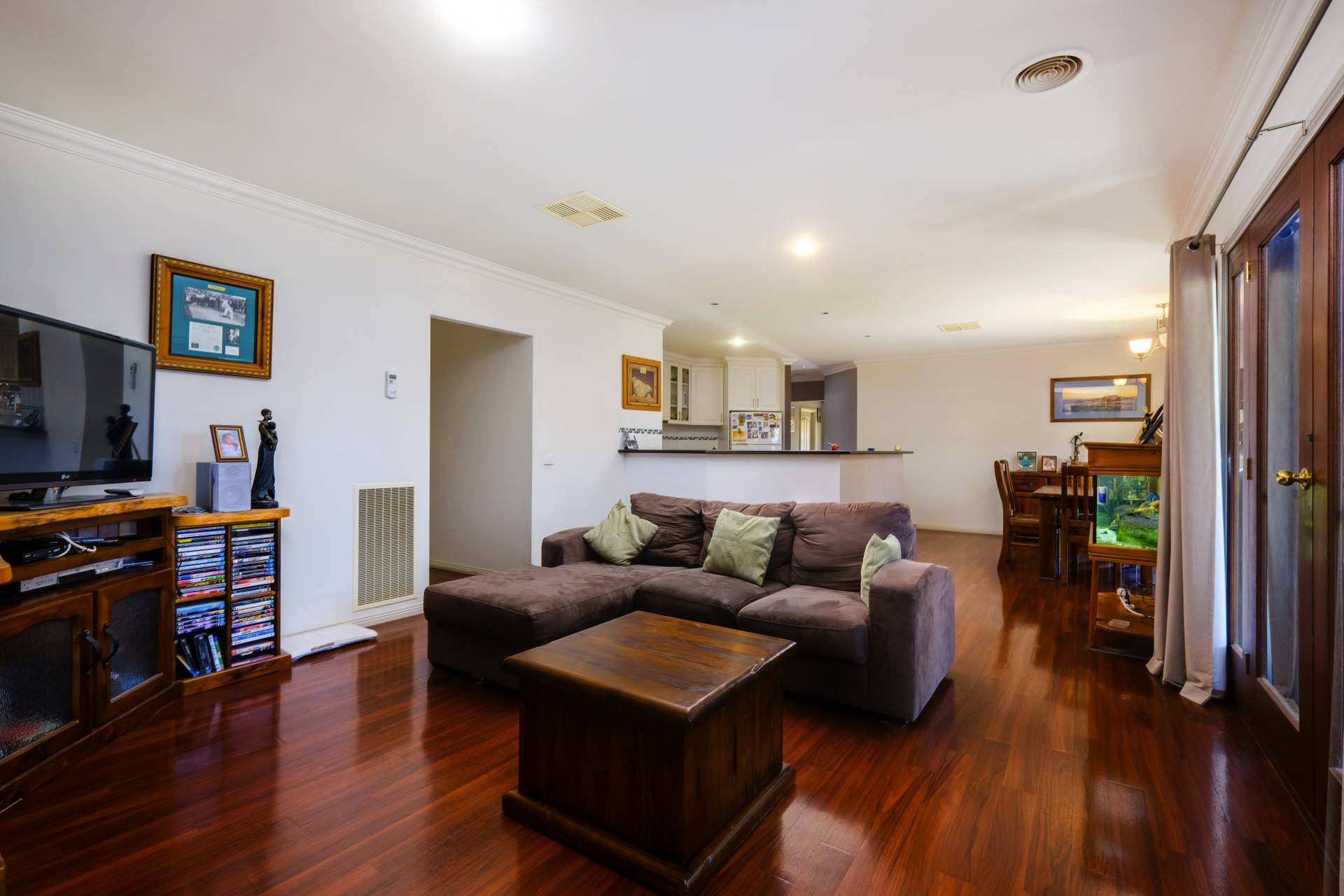 Comprising 4 double bedrooms, main with ensuite and walk-in robe. The remaining bedrooms with built-in robes are serviced by the second bathroom with shower, bath and separate toilet. Timber floorboards feature in the central 2pak kitchen with walk-in pantry, gas cooker, dishwasher and open plan family and meals areas. Ducted cooling and heating provide year round comfort while a formal front lounge and additional rumpus / theatre room ensures the whole family has their own space.