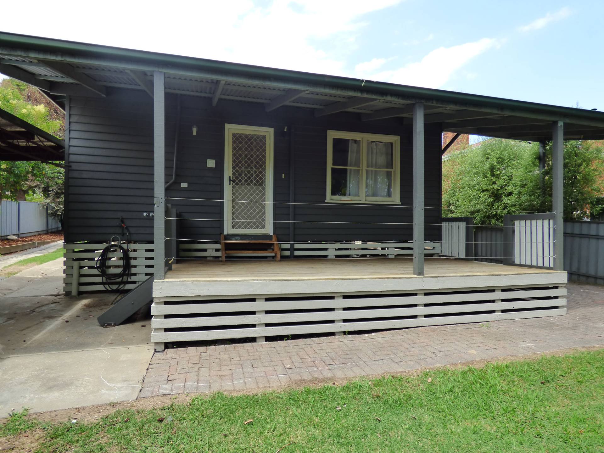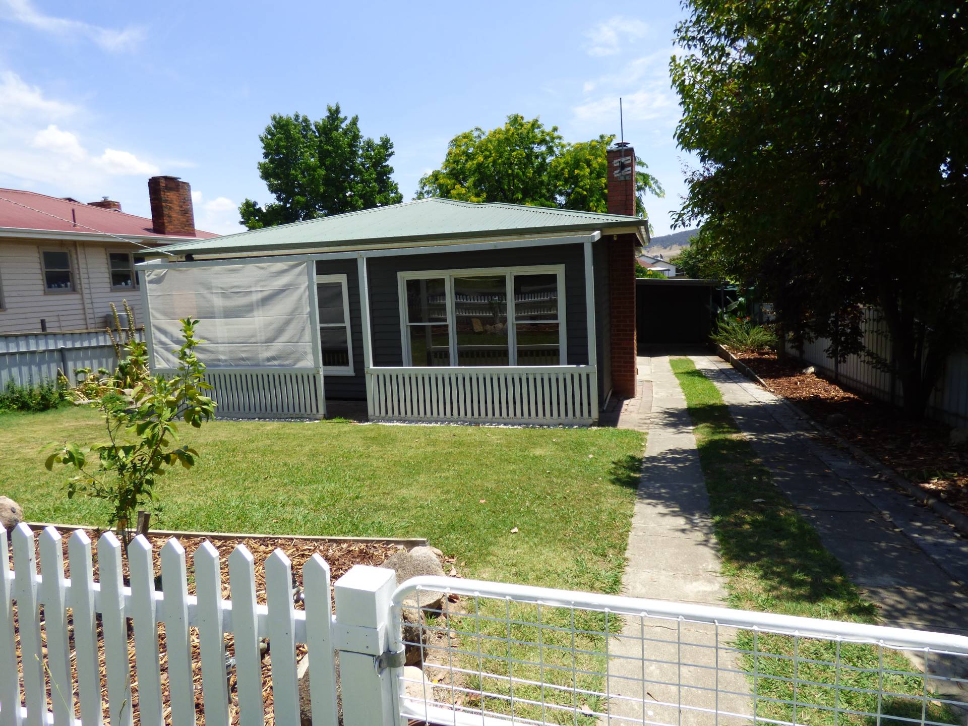 With most of the major expenses done over recent times – restumping, roof replaced, upgraded kitchen and bathroom this will make a great first/family home. 3 bedrooms with built in robes, ceiling fans and wall heaters in 2, open plan living area with polished timber floors, combustion wood heater, air conditioner, ceiling fans, European style laundry and a great outdoor entertaining area at the rear. Recently painted externally, there’s also a garage with workshop area and carport. The back yard is well shaded in the summer with a beautiful Gleditsia Honey Locust tree that also allows the sun to shine through in the winter. Located handy to the centre of town it represents very affordable buying.