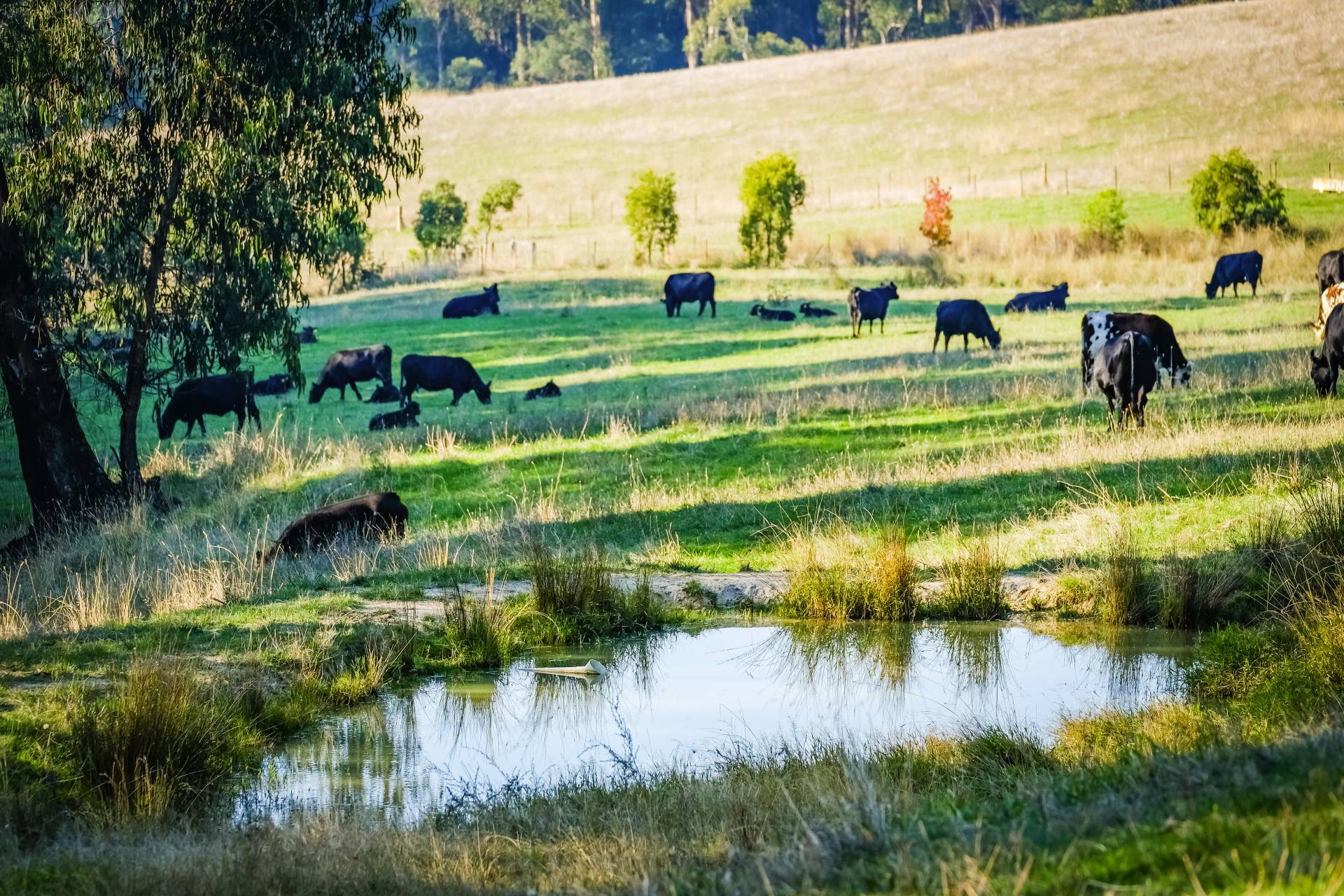 • Pastures of phalaris, clovers & ryegrass, red & grey soils
