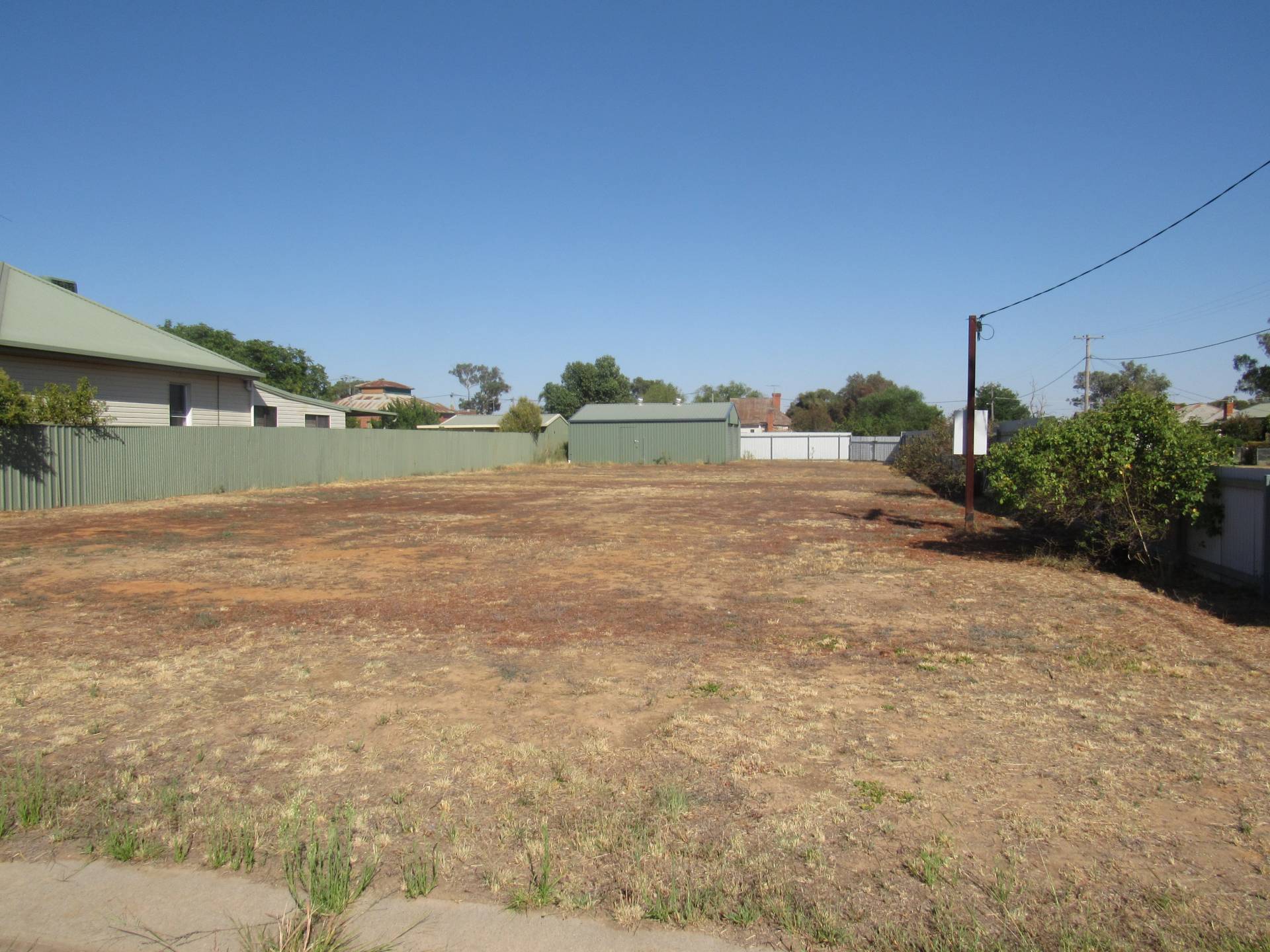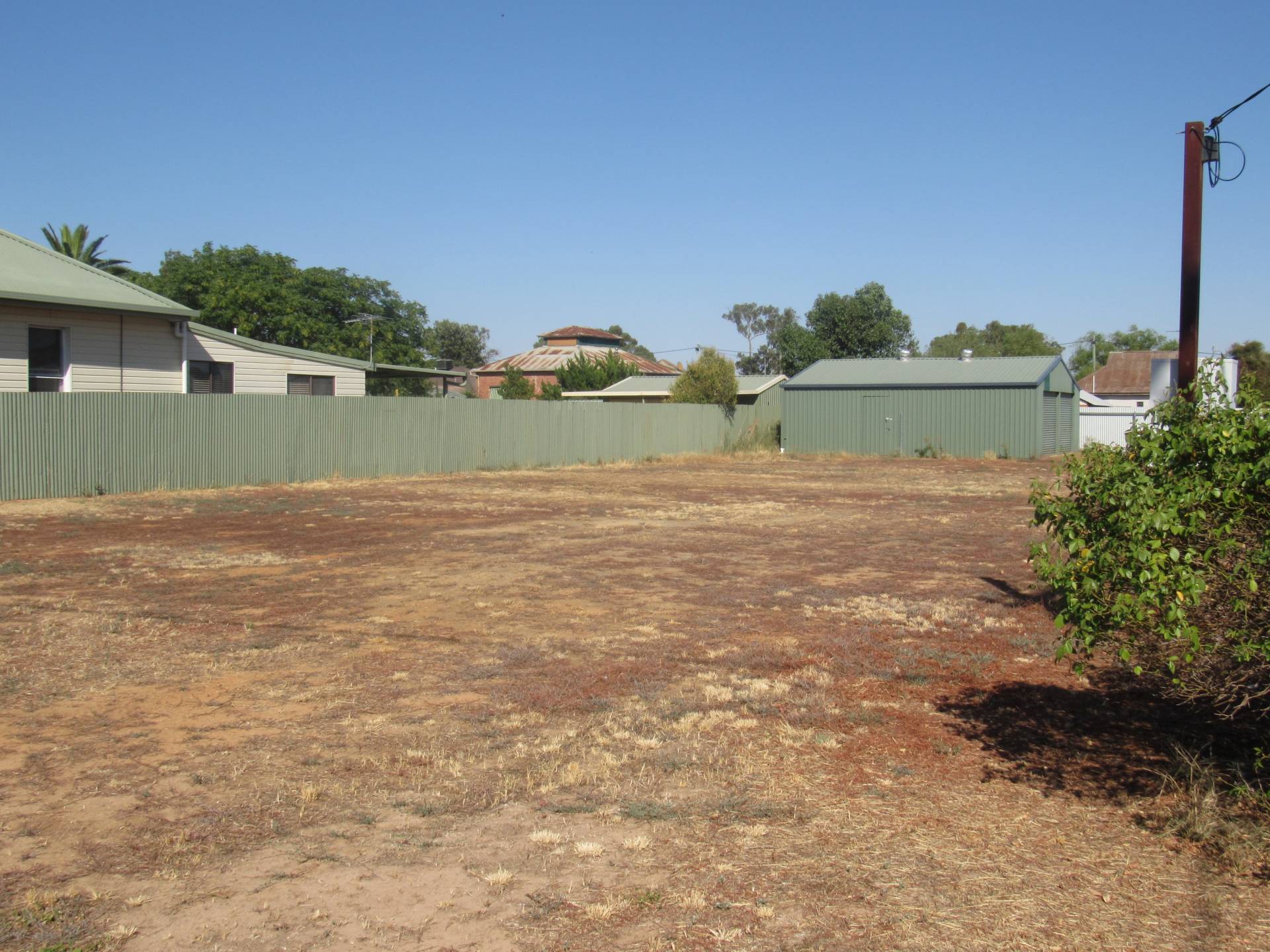 Offering the convenience of a colour-bond shed with twin roller doors already installed, complete with power and concrete floor. With underground power, sewerage and town water available to the block. Includes rear access and fencing to three sides. Call to inspect.