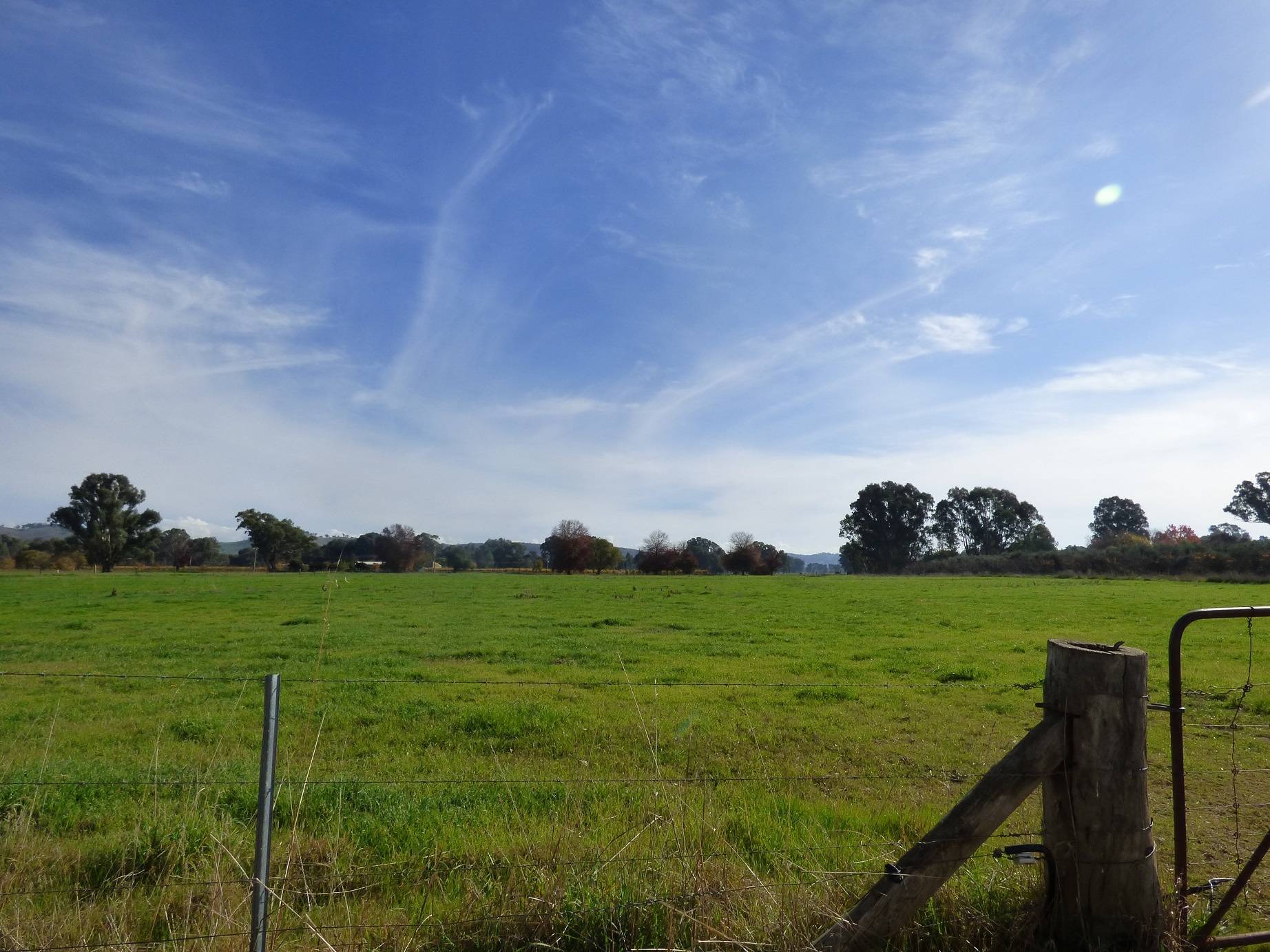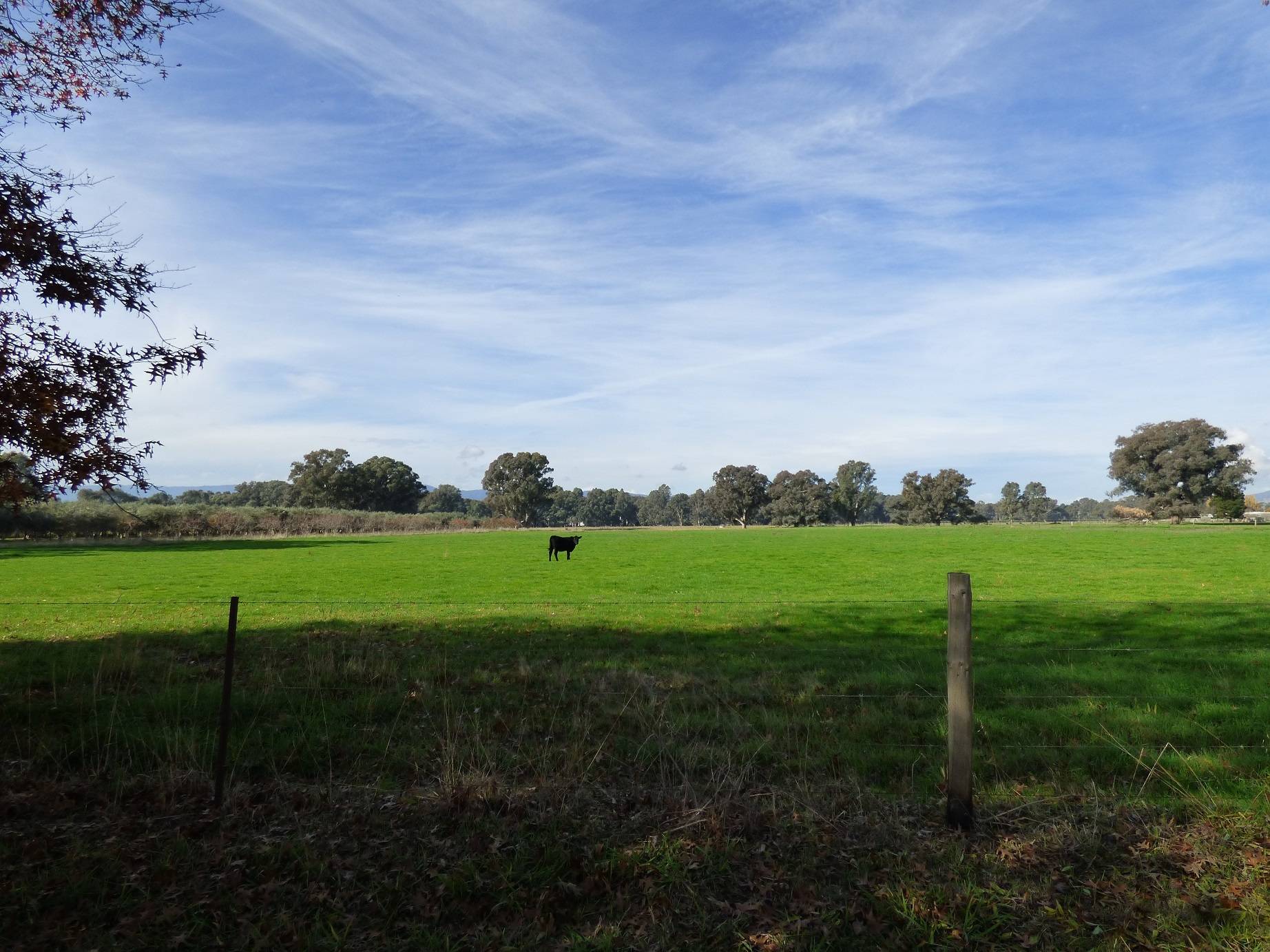 Quality Ovens River flats, approximately 30.35 hectares (75 acres) in size with very good shade trees and good water. A 72 mega litre irrigation licence from a dragline hole offers the opportunity to intensively farm the property. 2 stock troughs (one not currently connected) and a rainwater tank. A section of the property is planted to olive and persimmon trees, one paddock recently had lime applied and was re-sown with an annual pasture mix, there is underground irrigation lines in this section with the balance of the land used for grazing. Supered last year and a contractor employed for weed control. Fertile land that is well suited to cropping or a range of horticultural pursuits, a great addition to an existing farm.