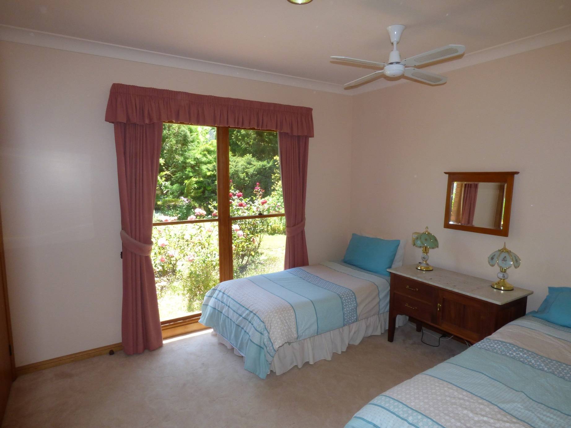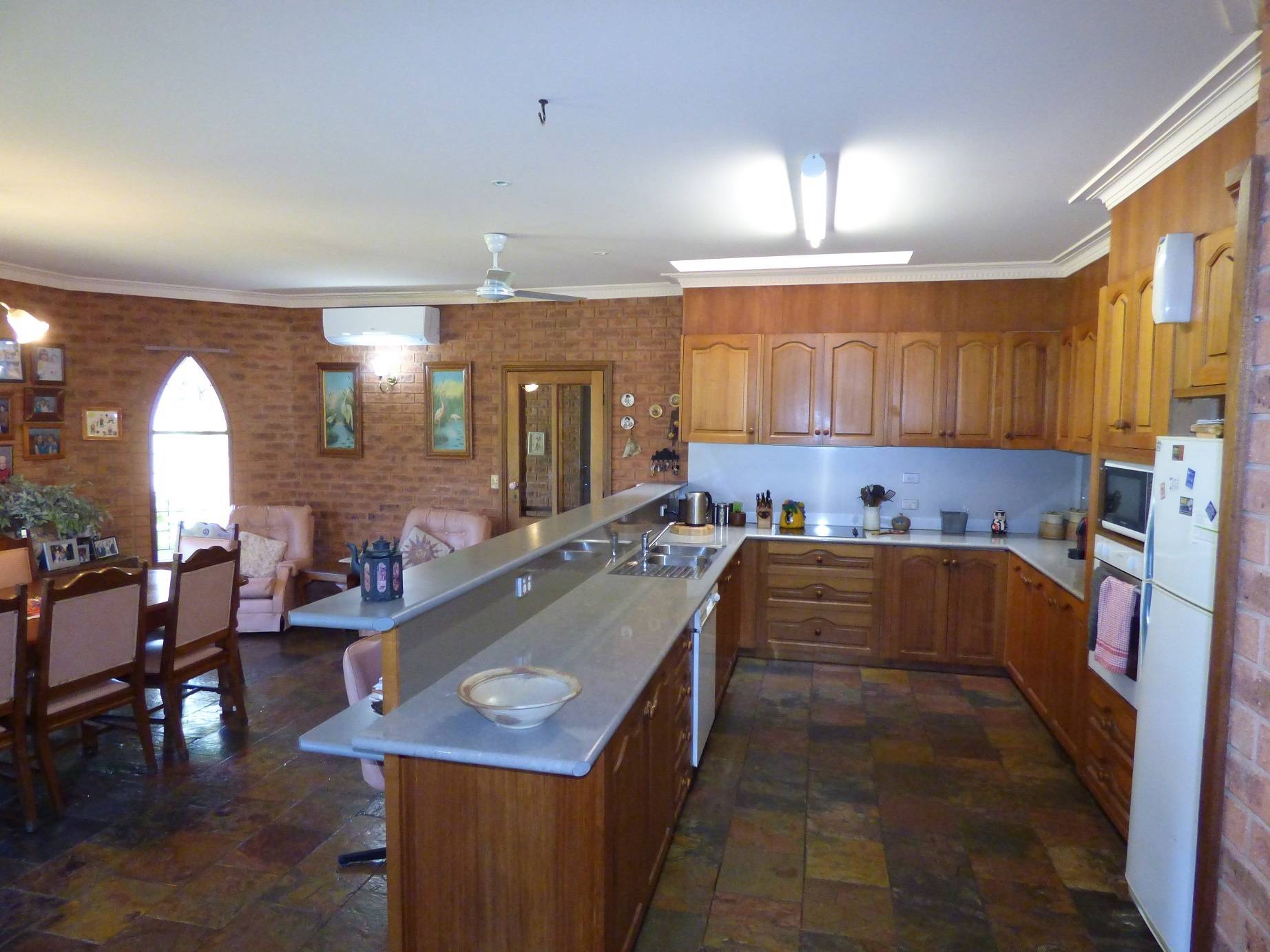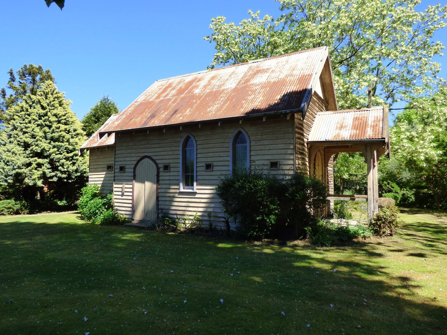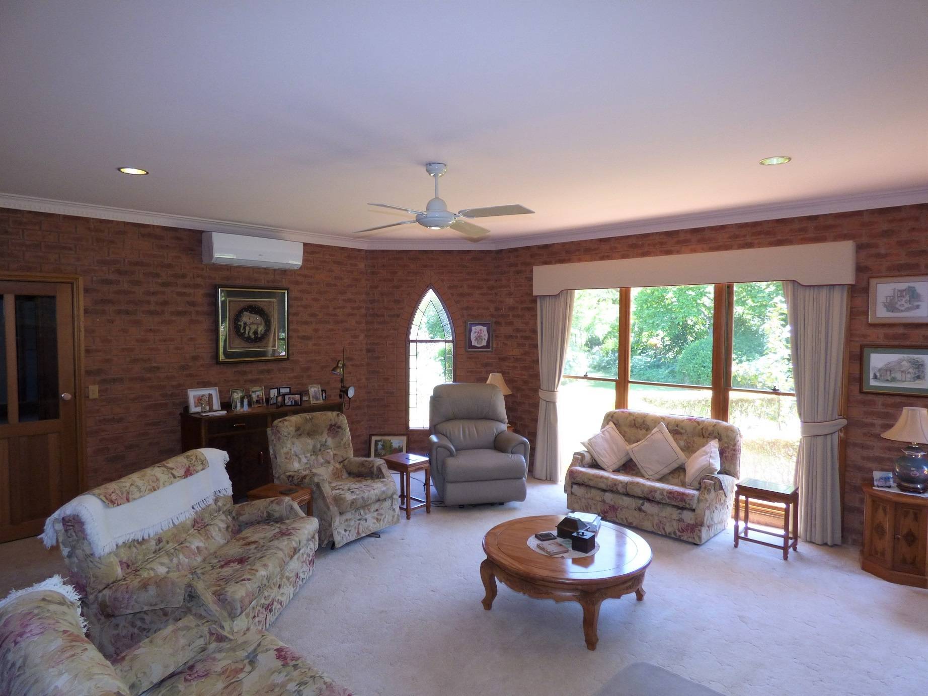 Located between Bright & Myrtleford on the Great Alpine Road on approximately 5,500 square metres of land this substantial, quality built solid brick residence features; a spacious separate lounge room, combined kitchen and dining room with slate tiled flooring, electric Tasmanian Oak kitchen, 4 or 5 bedrooms, an ensuite, main bathroom and 3rd shower and toilet, electric floor heating , 2 reverse cycle air conditioners and a wood heater and plenty of storage. There is also a double garage and outdoor patio area with an excellent view of Mt Buffalo. Set amongst the well-established parklike surrounds with many exotic plant species is the historic former Church of England Church adding another dimension with many possibilities – an art studio etc. Handy to the snowfields and the Rail Trail across the road the property is suited to a range of property owners.