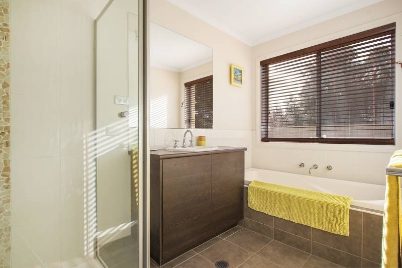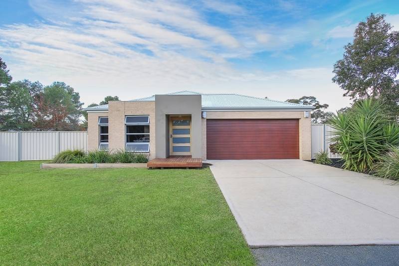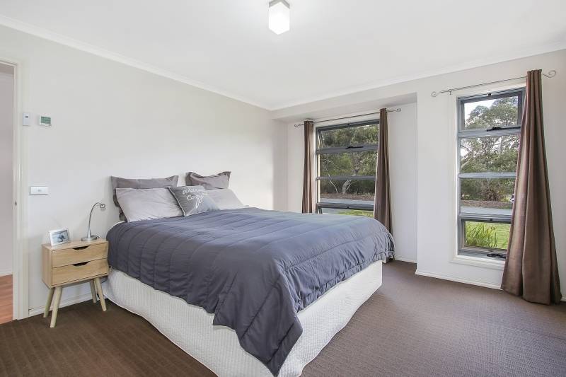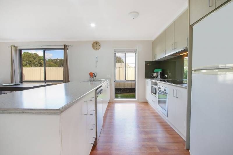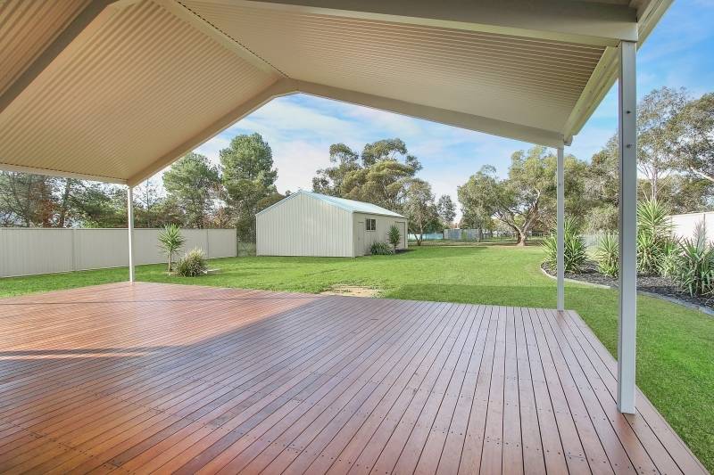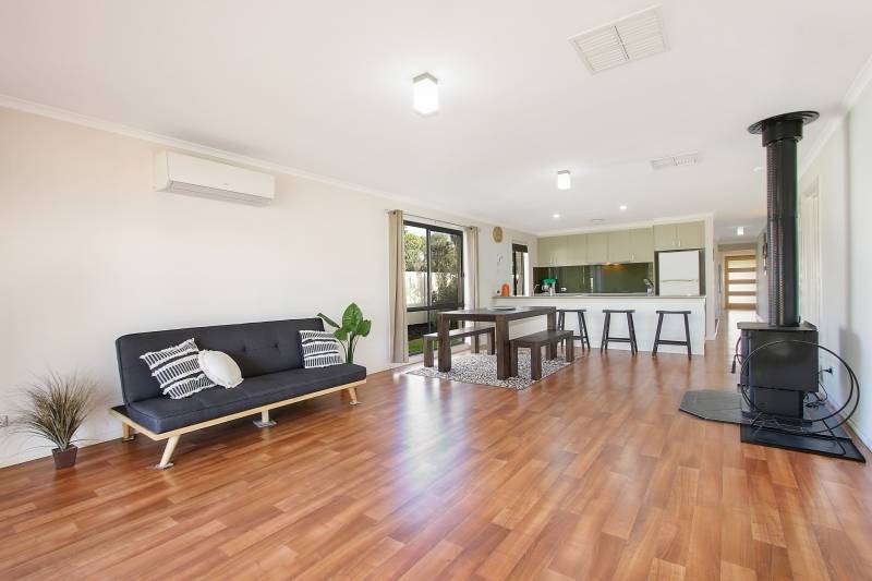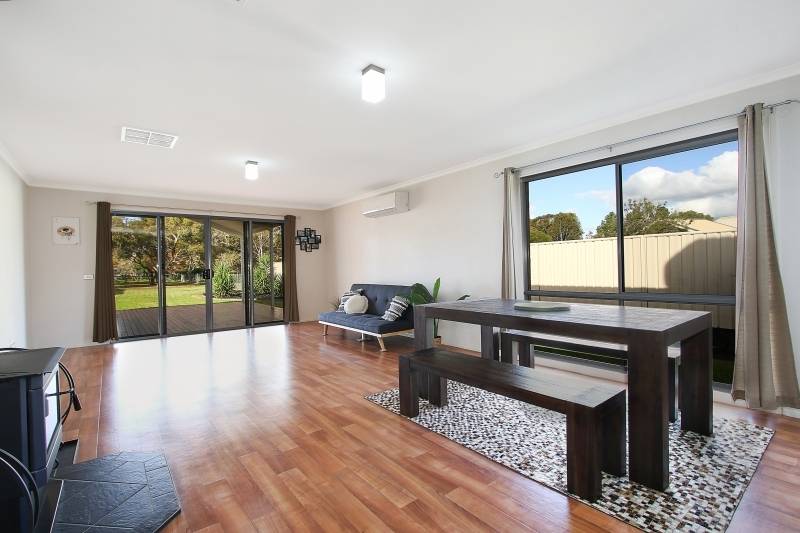 Comprising 4 spacious bedrooms with built-ins, master with walk-in robe and ensuite, second bathroom with bath, shower and separate toilet. Featuring a stylish kitchen with electric cooking and dishwasher overlooking the large open plan family/meals area with wood heater. Additional living options include the formal lounge and expansive all weather timber deck measuring 9m x 6m, ideal for entertaining. Quality fittings and finishes include steel frame, easy to maintain timber look flooring, tinted windows, ducted cooling and split system air conditioner.