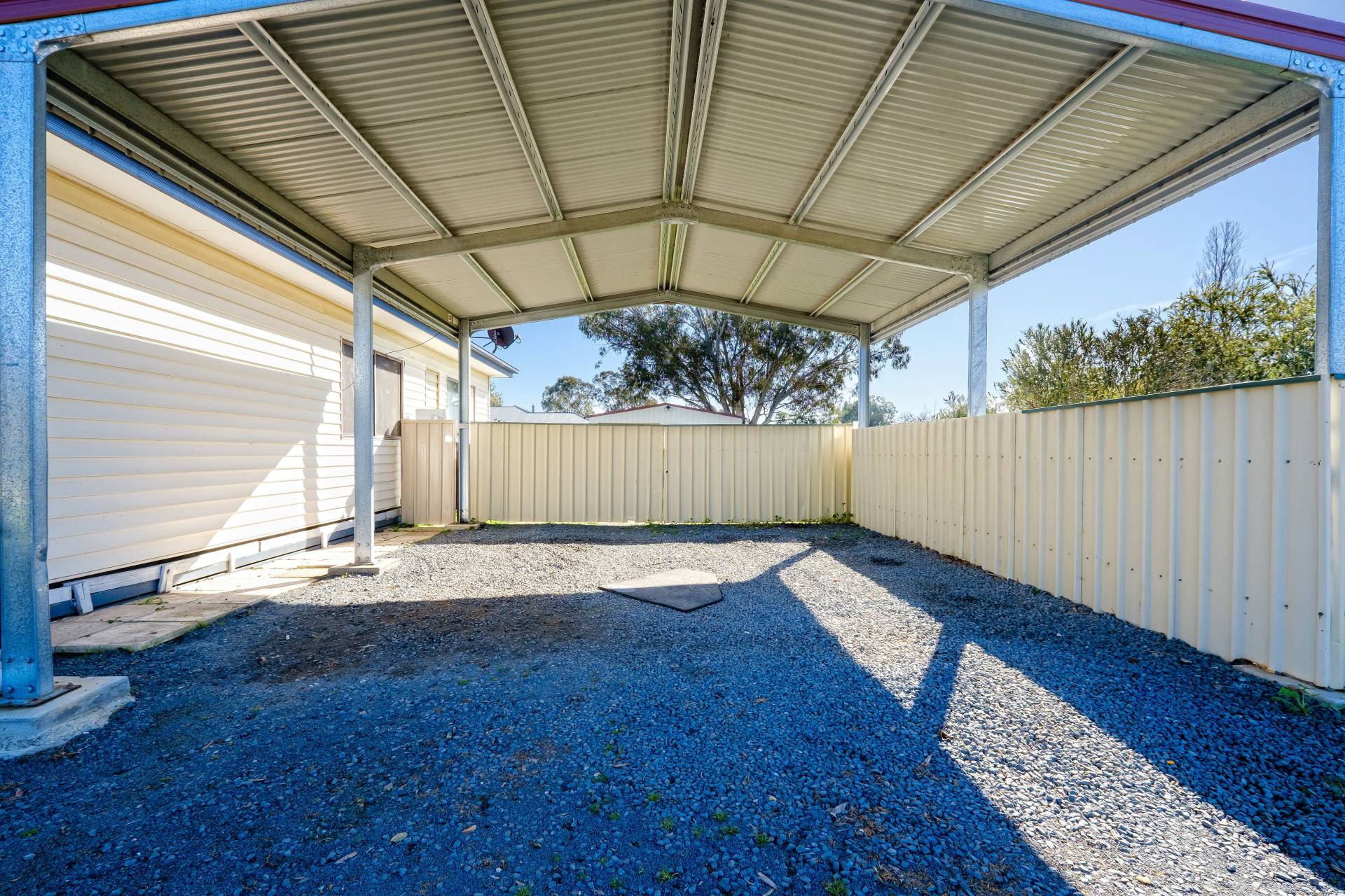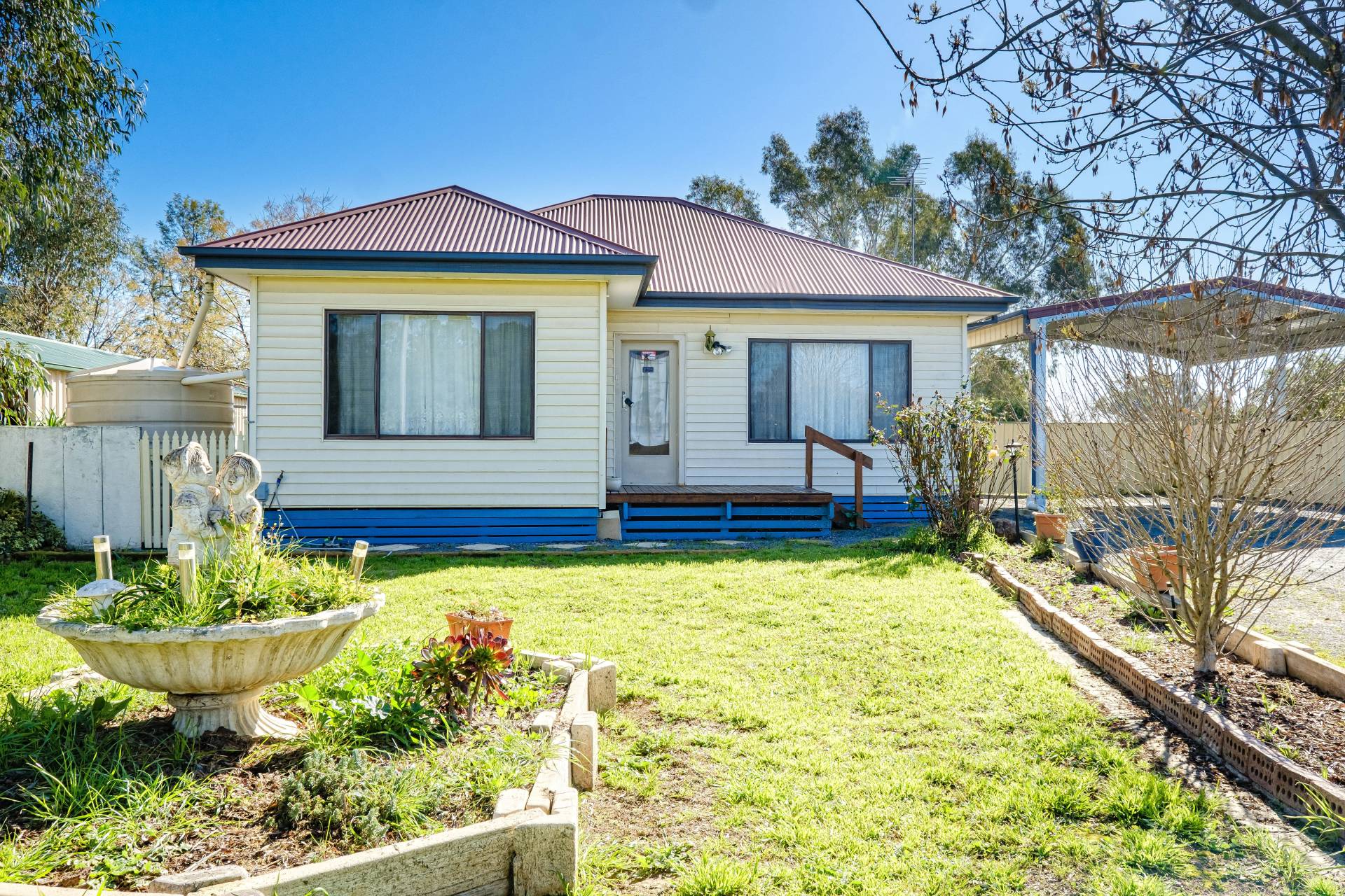 Includes a small covered timber deck overlooking the large secure backyard with side and rear access, double carport plus 6m x 6m powered shed with single roller door & concrete floor, garden shed for additional storage and 2 water tanks. Call to inspect.