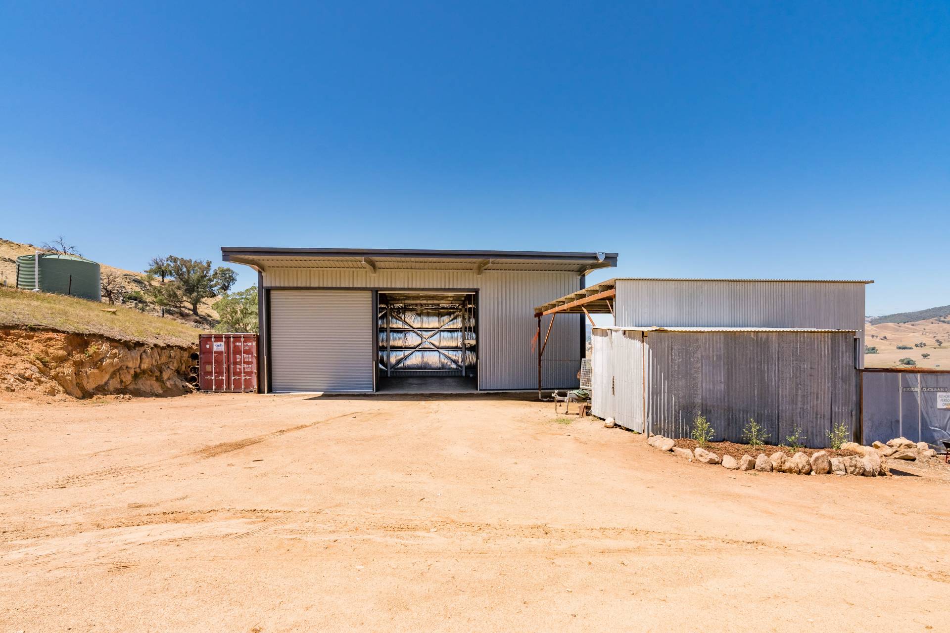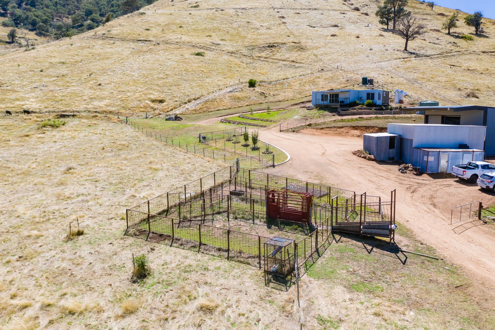• New 15m x 10m x 6m steel shed, with electric doors, older shedding, cattle yards.