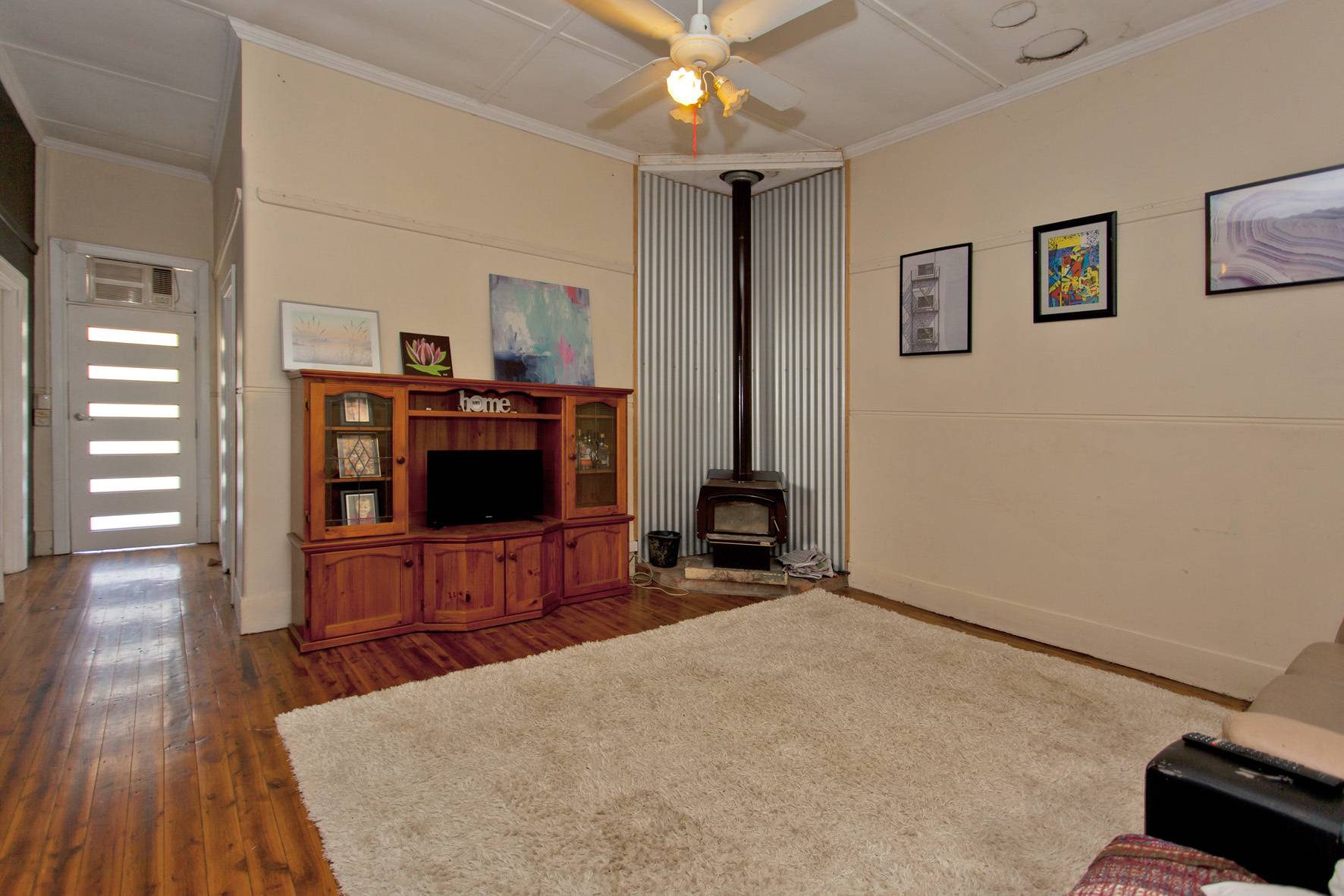 Comprising 4 bedrooms and large bathroom with shower over the bath. Featuring kitchen with electric cooking, dishwasher and pantry; adjoining meals, lounge room with timber floorboards and wood heater plus ceiling fans and wall air conditioning to service the home. Outside includes all weather pergola, backyard with rear lane access, double carport, 10m x 4m powered shed and 5kw solar panels.