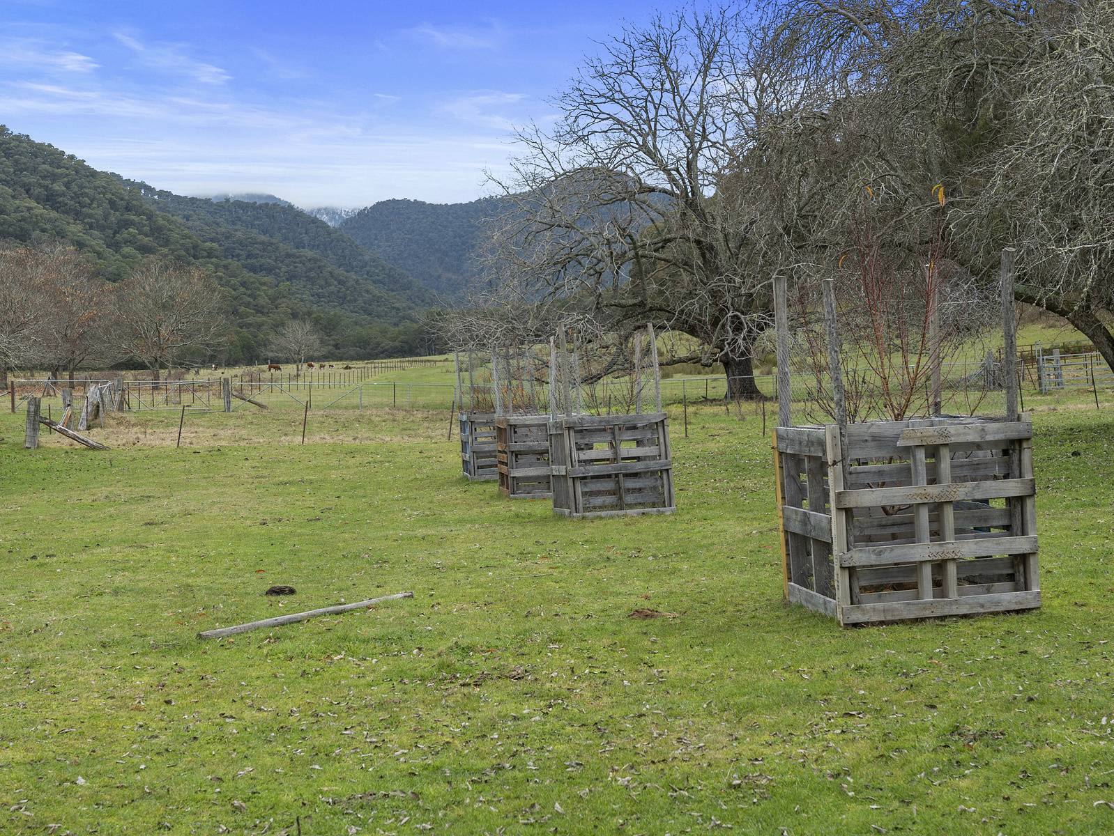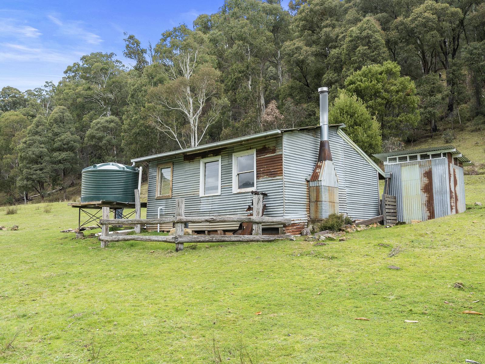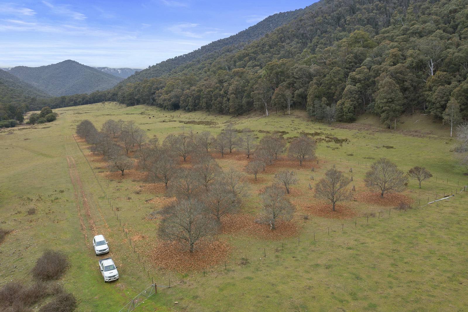 22.96 hectares (56.73 acres) of cleared land with a historic high country hut constructed in 1959 near the site of the original hut and recently rebuilt, chestnut grove and a magnificent Black Walnut tree that is estimated to be 160 years old. There are numerous possibilities  with this property – camping or glamping on the banks of the beautiful river, hunting – abundance of deer in the area, fishing – the Buckland River is renowned for its trout fishing, numerous bushwalking trails, high country getaway with no neighbours or capitalize on the ever-growing tourist activities of the area (STCA).