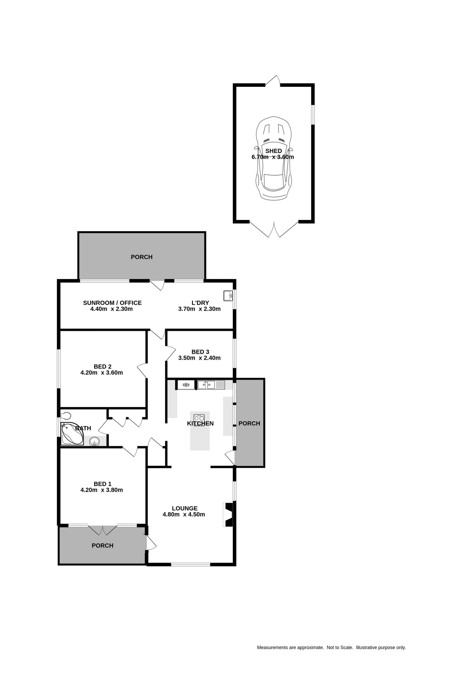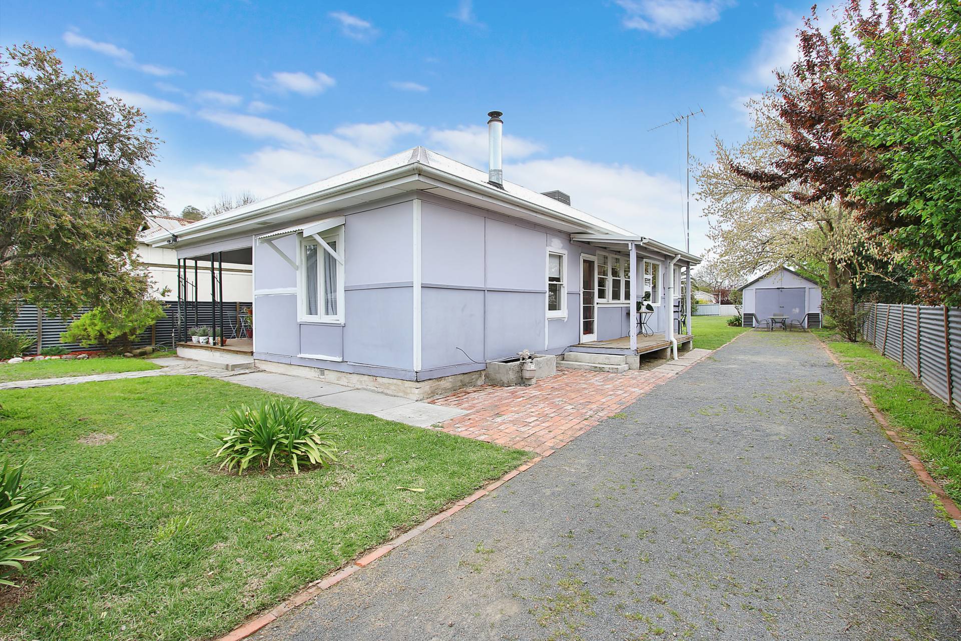 Boasting polished floorboards throughout, the home comprises 3 bedrooms, master with French doors opening onto the front verandah, updated bathroom with shower over the spa bath and separate toilet. Featuring kitchen with timber island bench, gas cooking and breakfast bar; and flows front lounge with wood heater and all-purpose sunroom at the rear of the home.