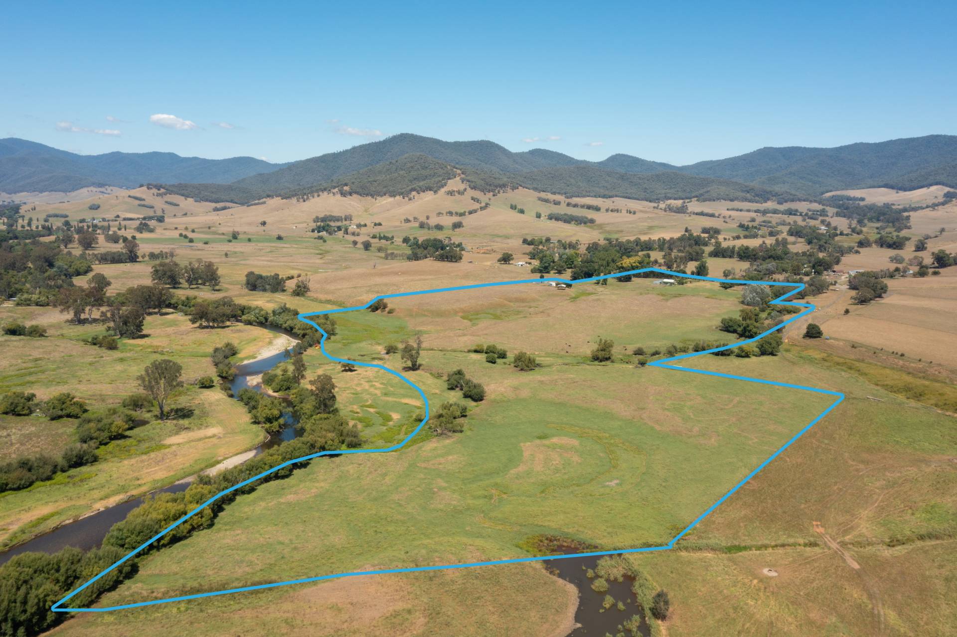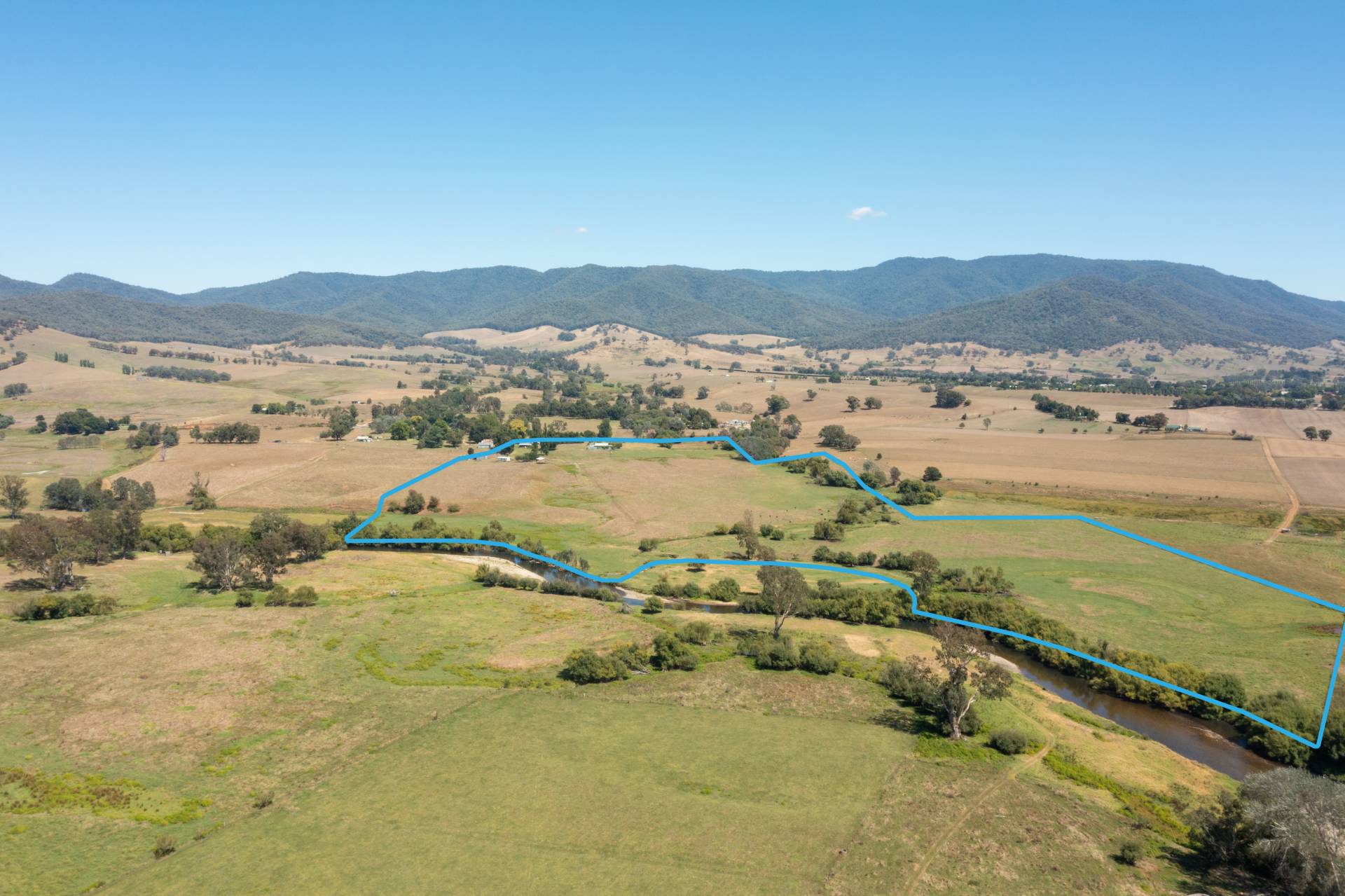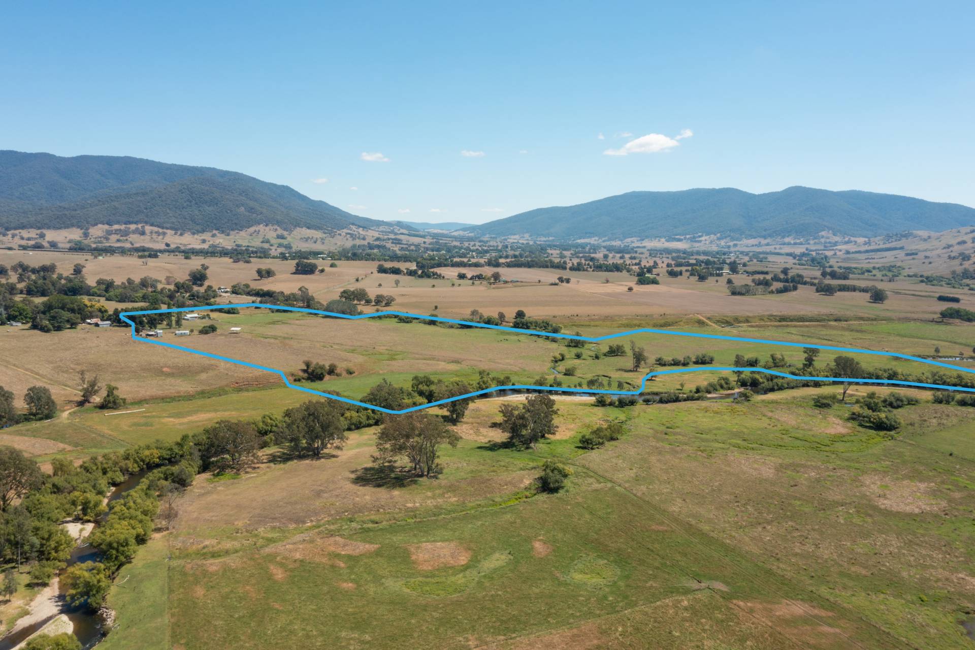 fibro clad cottage that has an open plan living area as well. 2 hay sheds, lock up storage sheds and a set of cattle yards. Water is gravity fed to the home from house creek, there is also a 60 mega litre irrigation licence from the Kiewa River and a 4 mega litre licence from the creek, an eight inch irrigation mainline runs from the river to the front of the property allowing for the whole property to be irrigated if needed. Well located on the highway it is within commuting distance to Myrtleford, Mt Beauty and Albury/Wodonga. There has been very strong demand for properties with river frontage and this a great opportunity to secure one.