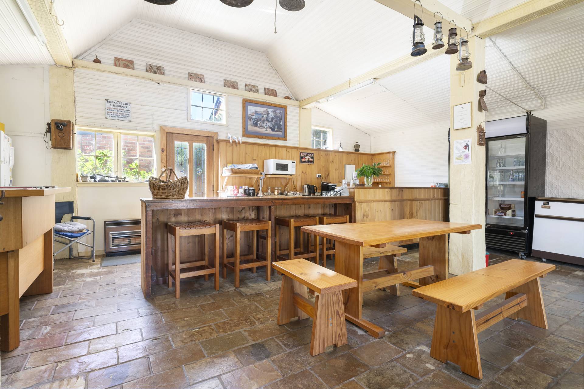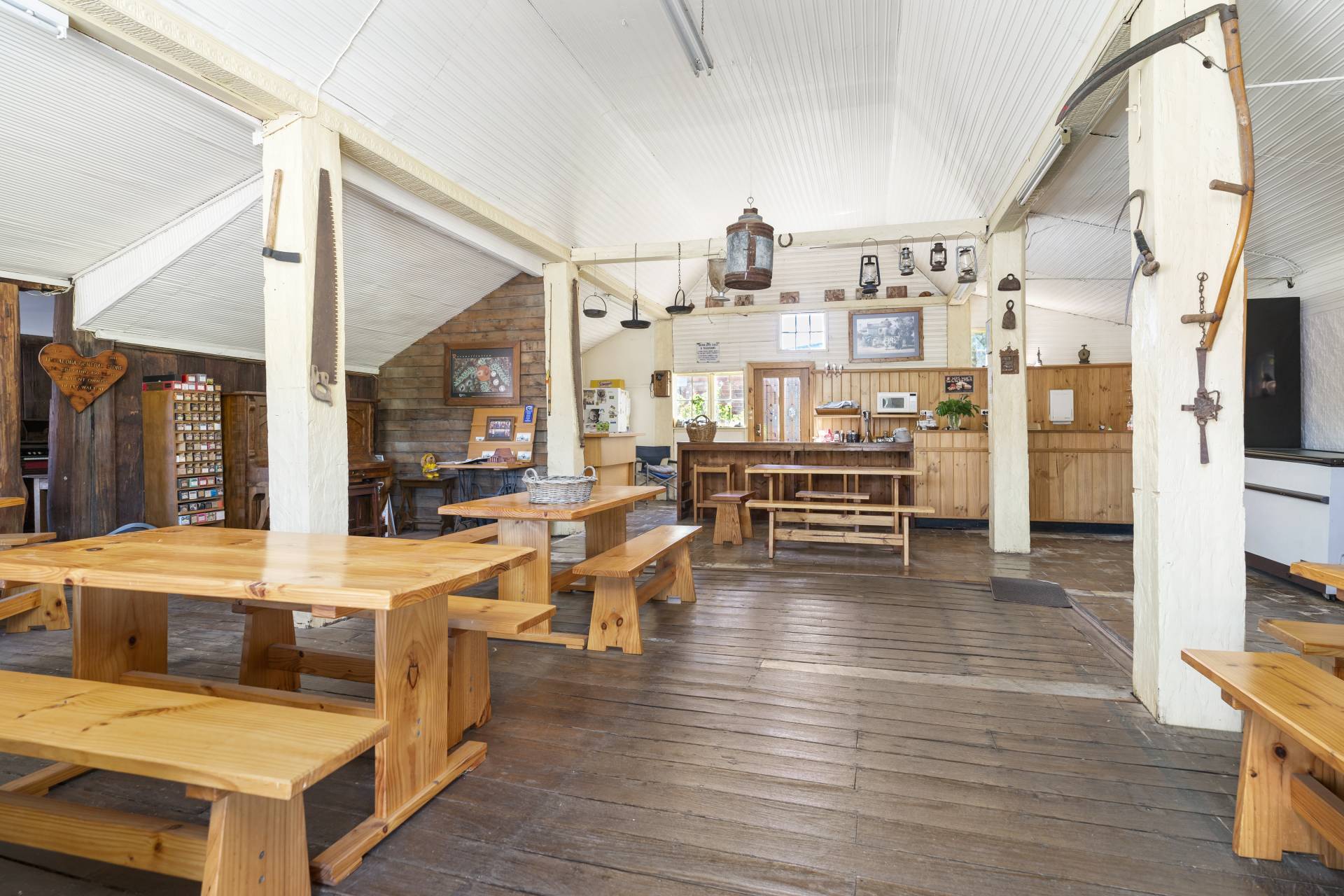 The General Store built in 1864 is set next door, and exudes history, rustic charm and plenty of nods to eras past, whilst still providing the modern facilities needed to make it suitable for use as a cafe, retail store or art gallery. Tucked behind the General Store is the bakery which boasts the original Small & Shattell bakers oven and the convenience of 2 powder rooms.