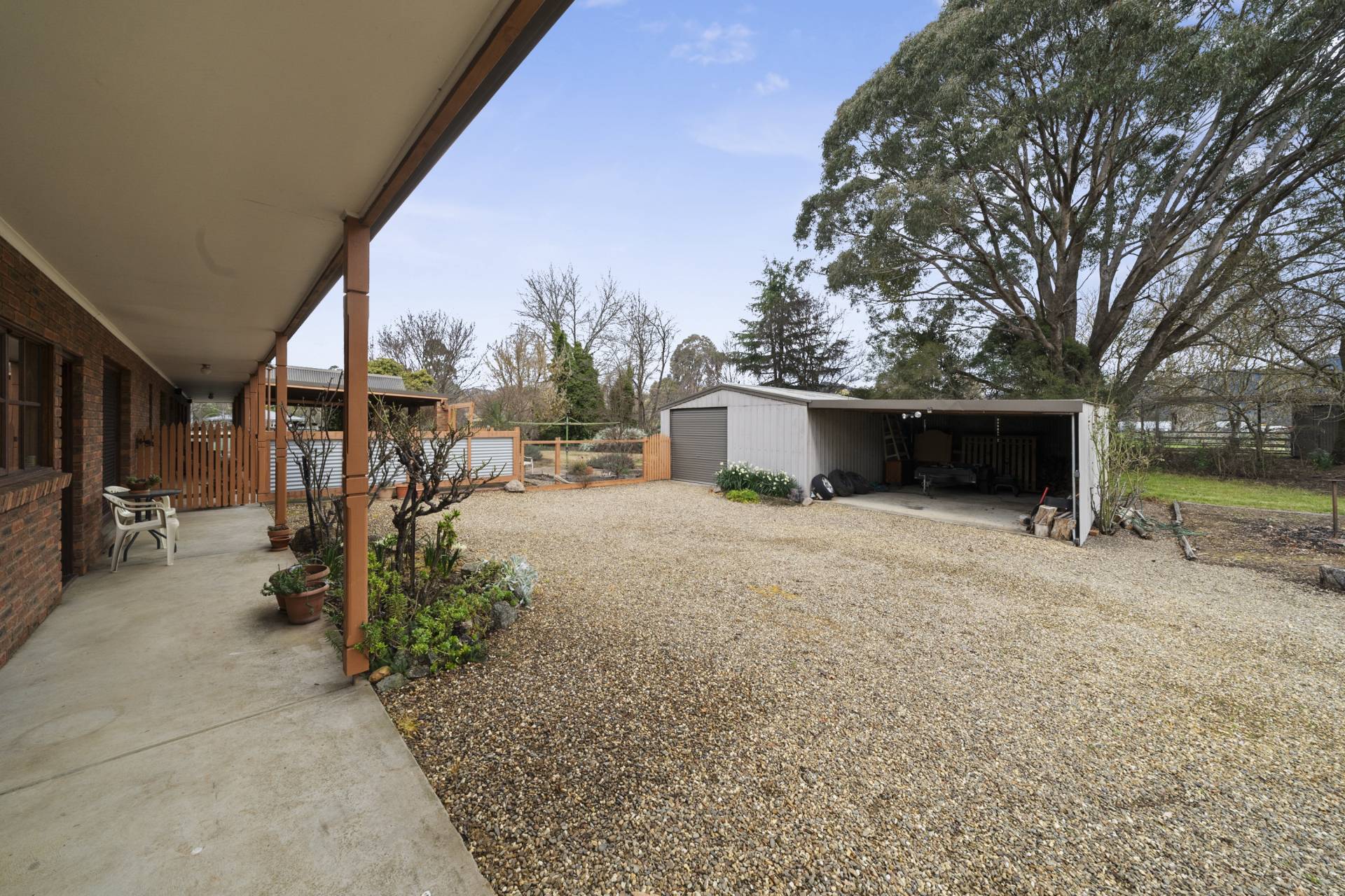 Vehicles are well catered for with a generous double garage, large carport/open bay storage area plus a lock up workshop. Town water is connected plus the property has it’s own well. The surrounds are very well established with some magnificent deciduous and evergreen trees.