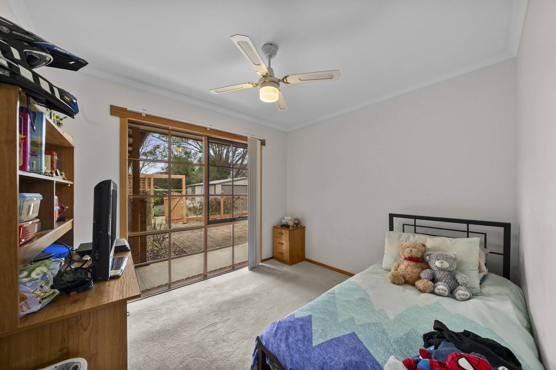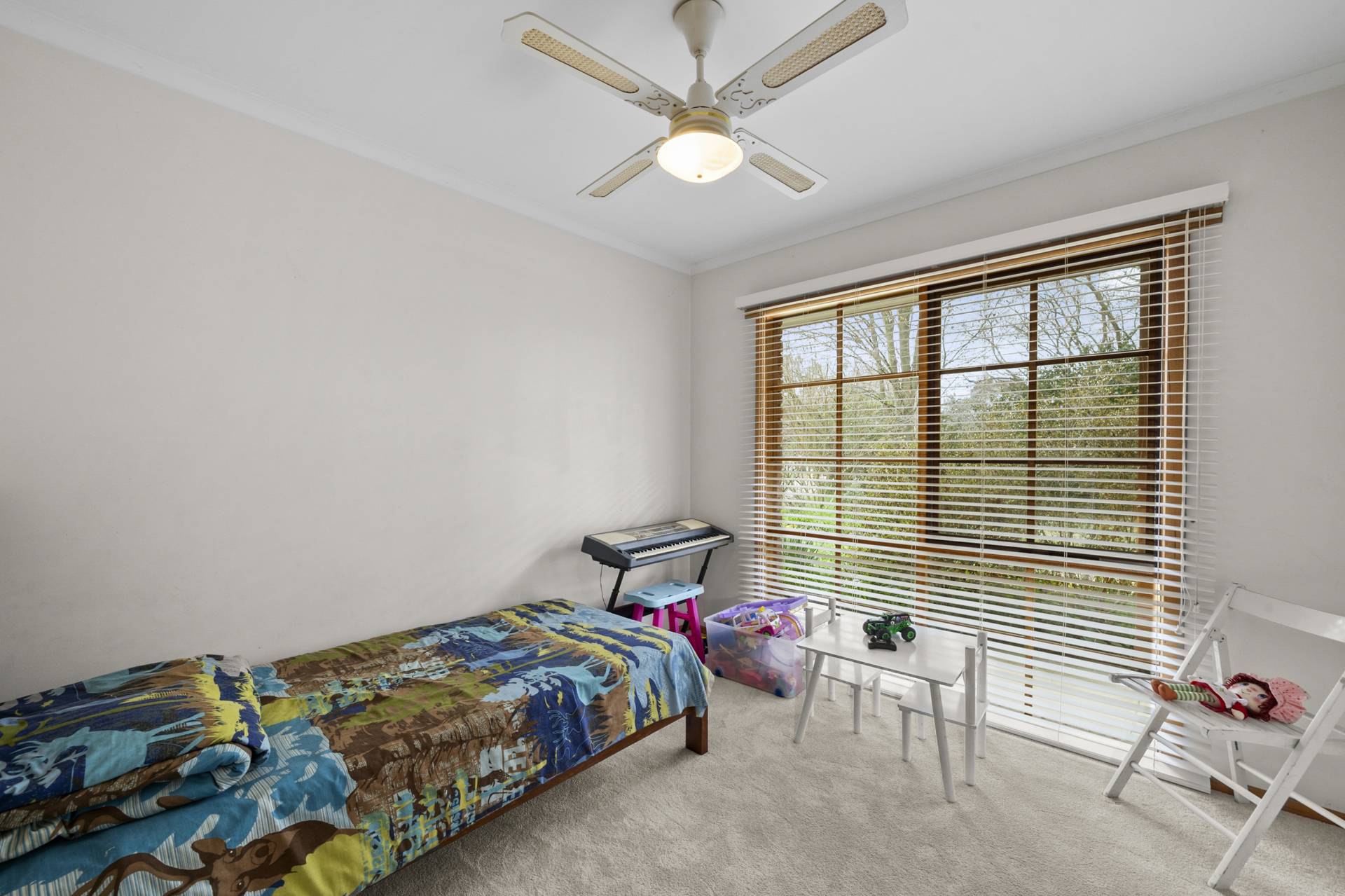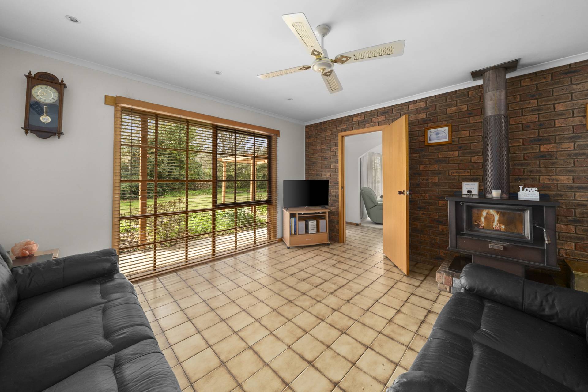 The main bedroom features a walk-in robe, ensuite and parents retreat which could serve a number of purposes especially for someone working remotely from home or as a 5th bedroom. Ceiling fans throughout, a combustion wood heater and reverse cycle air conditioning