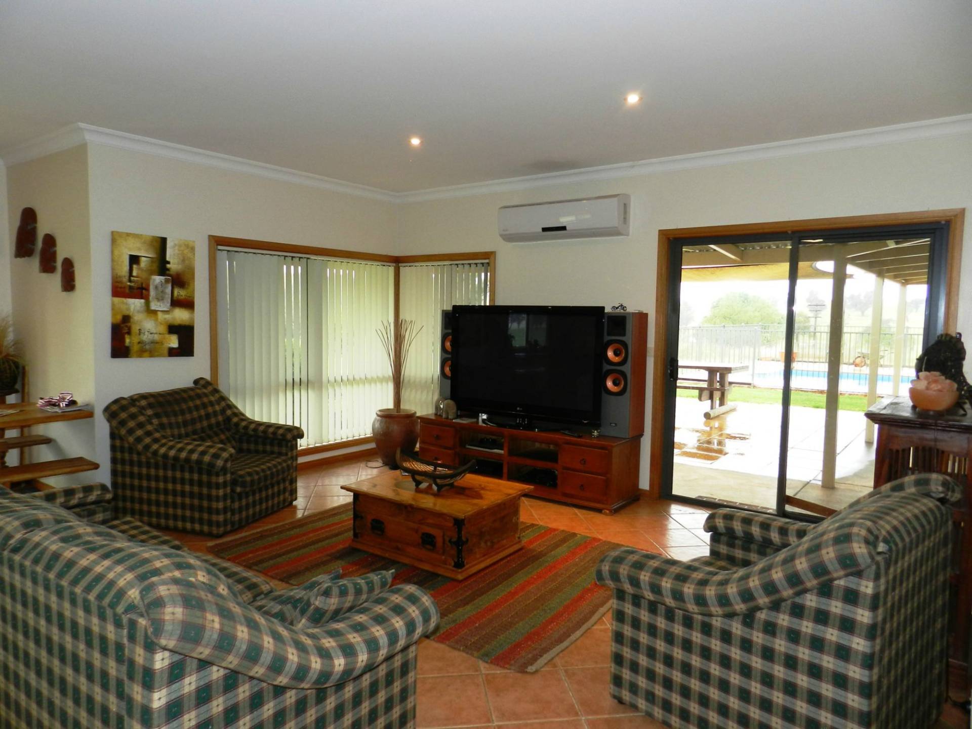 4 bedroom, plus study home with 2 bathrooms including ensuite, open plan living with 2 living areas & outdoor entertaining area overlooking the pool. Split system air conditioning & hydronic heating, wide veranda's surrounding the home.