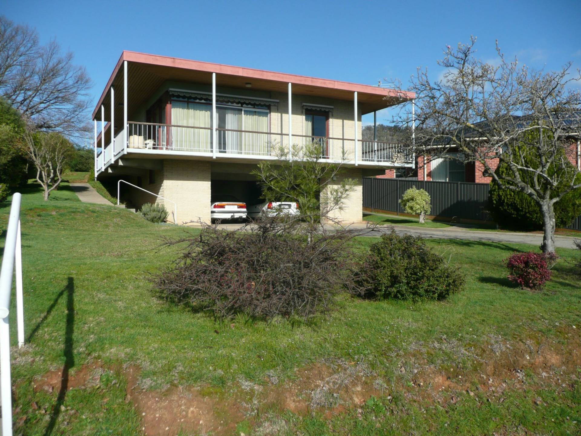 Architecturally designed and quality built this substantial home features a spacious living area surrounded by a balcony that over looks the town, very generously sized bedrooms all with large built in robes, St George stove, near new dishwasher in the north-east facing kitchen, parquetry floor in the dining area, split system reverse cycle air conditioner, study or 5th bedroom, 9’ ceilings, internal access to the double car accommodation under the home and a former boiler room that would make an excellent cellar With easy care surrounds, underground sprinklers, the home was purpose built to be low maintenance, is in a very good area of town and has tremendous views over the town.
