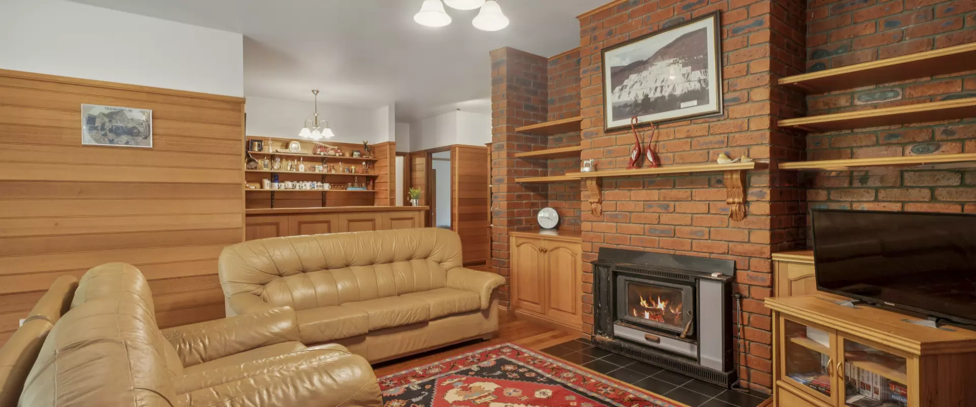 It consists of 3 enormous sized bedrooms all with walk in robes, a very spacious ensuite with corner spa and separate shower room in the main, large formal and everyday living areas, high ceilings, timber dado walls and Mountain Ash floorboards, an office or 4th bedroom, electric kitchen with Tassie Oak cupboards and a practical island bench offering excellent working space, split system reverse cycle air conditioning, combustion wood heating that is ducted throughout the home, storage room and cedar lined bathroom.